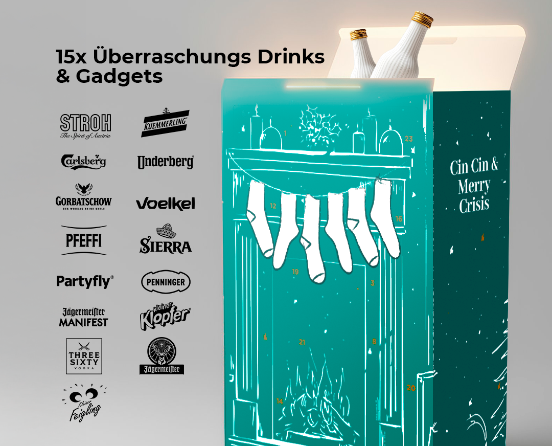 HOL DIR DEN FASHION DRINKS ADVENTSKALENDER IN DER LIMITED EDITION (NUR 1500 STÜCK VERFÜGBAR). ZUSAMMEN MIT UNSEREN KOOPERATIONSPARTNER HABEN WIR EIN EINZIGARTIGEN ADVENTSKALENDER ENTWORFEN. JEDEN TAG EINE ÜBERRASCHUNG. 12X FASHION DRINKS SOCKEN UND 15X GADGETS UND DRINKS VON UNSEREN PARTNERN.