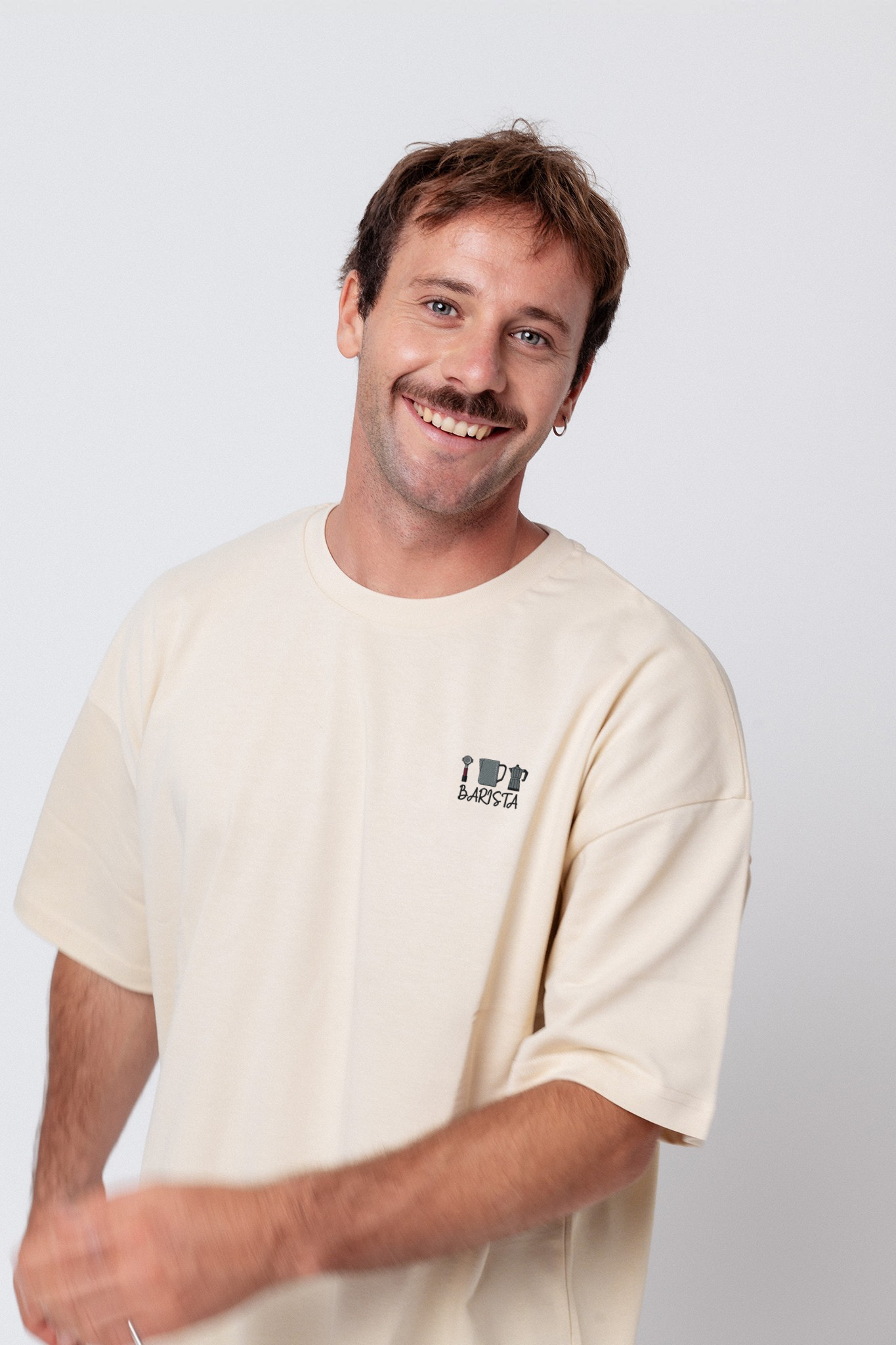 Heavy Oversized Bio Baumwoll T-Shirt mit extra schwerem Stoff (230gsm) und gesticktem Barista Set Design