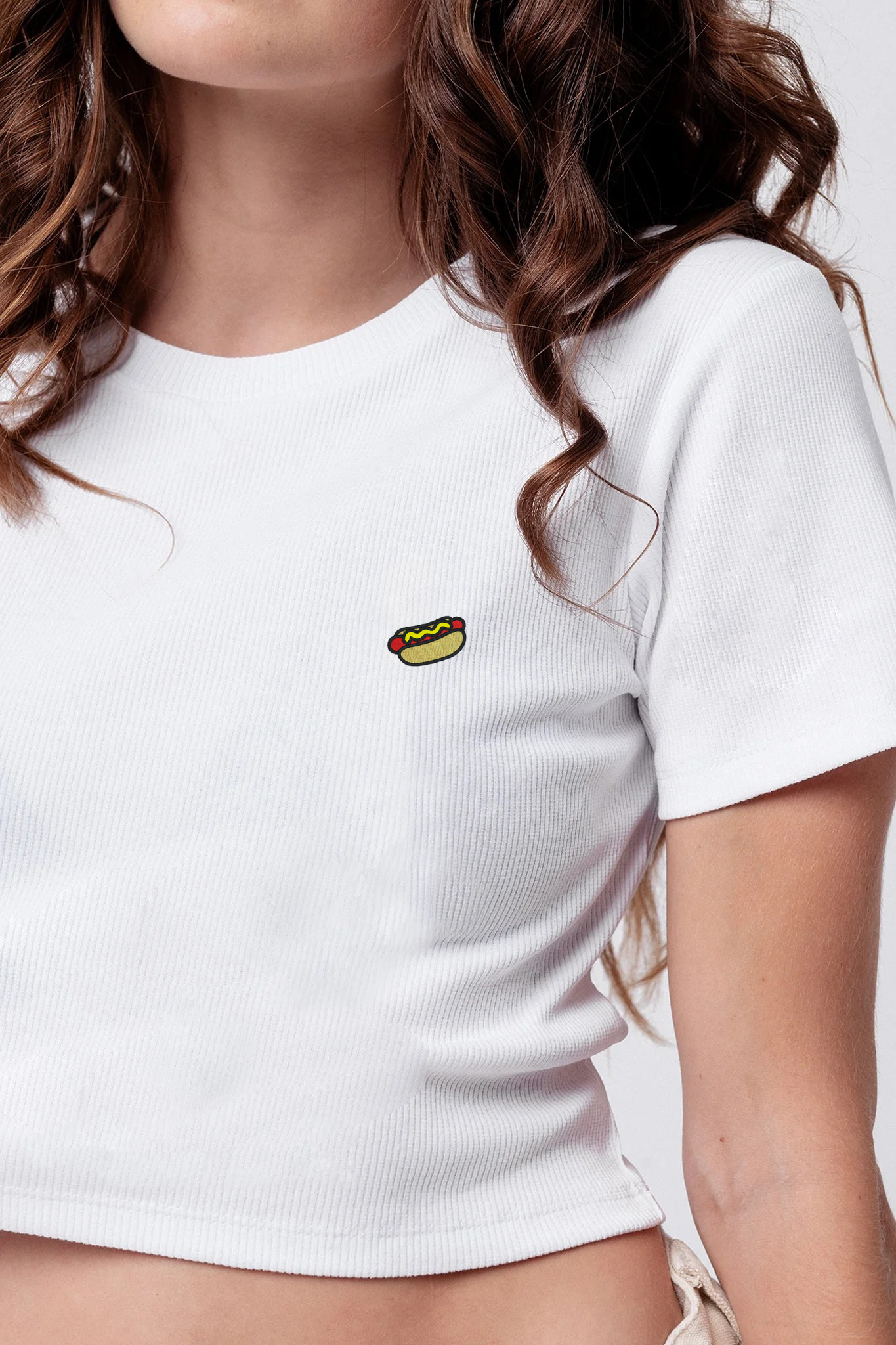 Hot Dog | Besticktes Bio Baumwoll Cropped T-Shirt