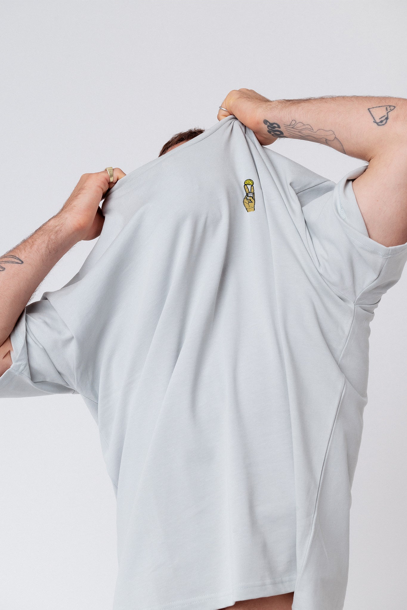 Heavy Oversized Bio Baumwoll T-Shirt mit extra schwerem Stoff (230gsm) und dem gestickten Tequila Shot Design