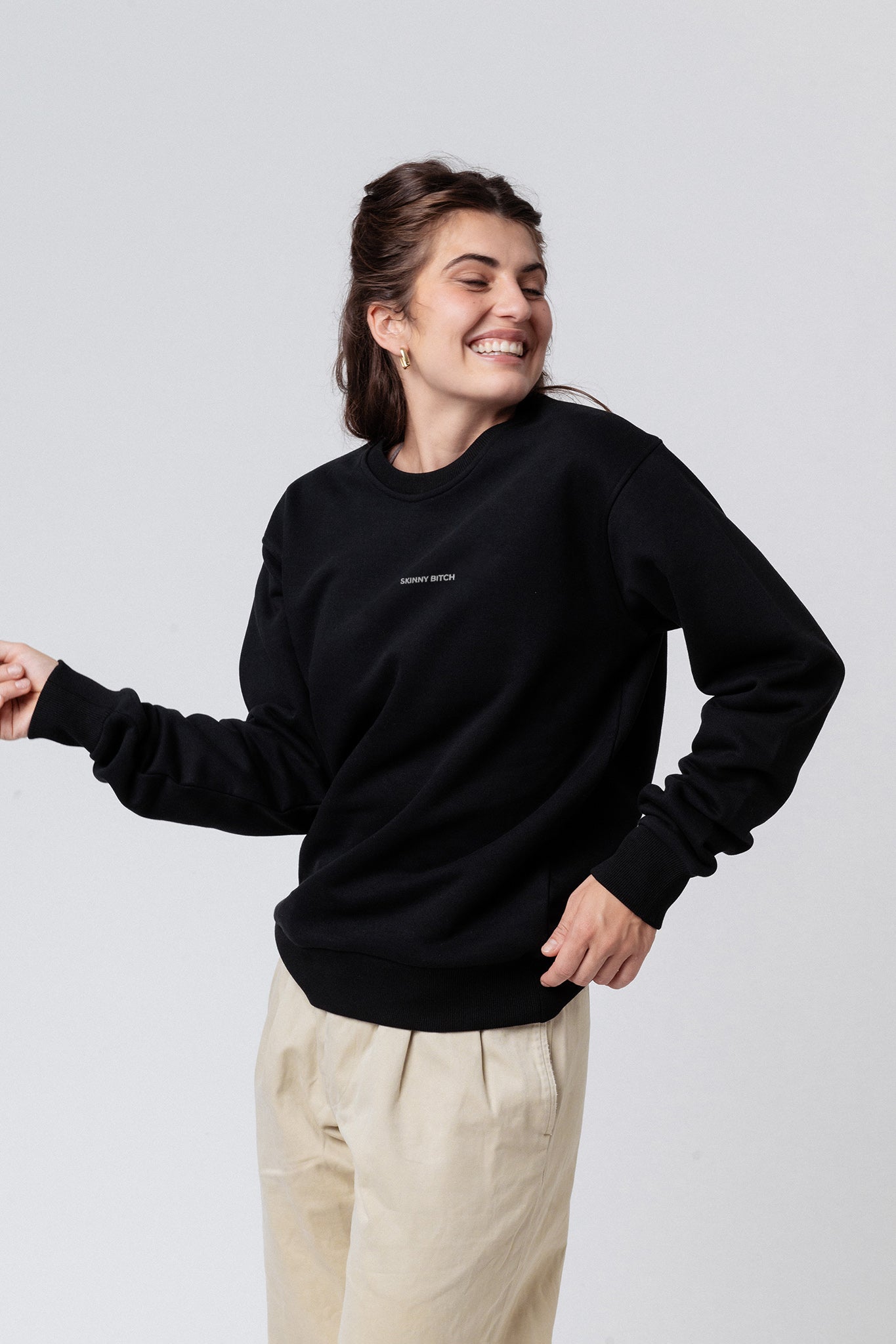 Bestickter Bio Baumwoll Unisex Pullover mit schwerem Stoff (320gsm) und gesticktem SKINNY BITCH Schriftzug