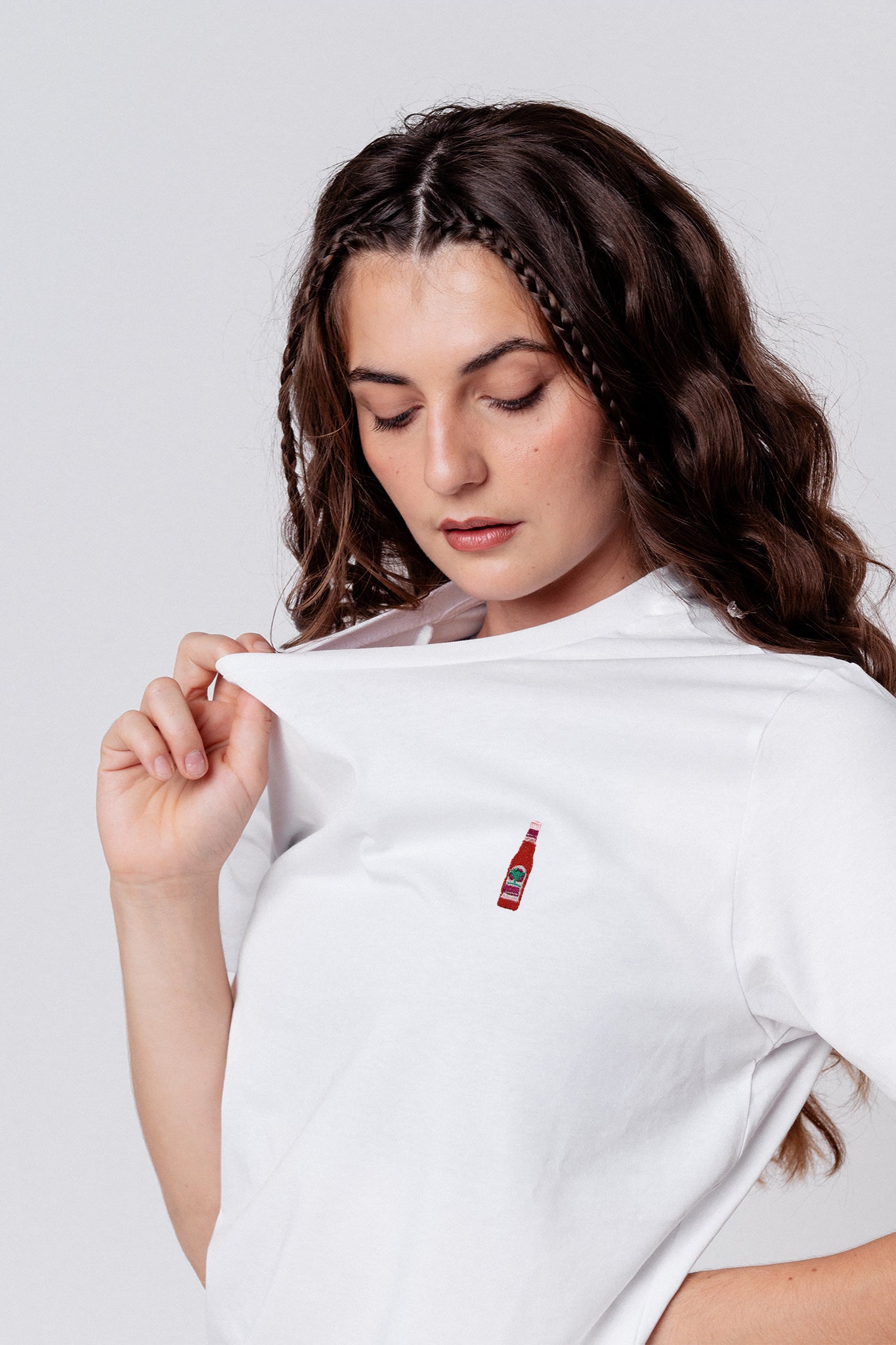 Besticktes Bio Baumwoll Unisex T-Shirt mit schwerem Stoff (190gsm) und der offiziellen gestickten  Somersby Blackberry Bottiglia