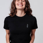 Besticktes Bio Baumwoll Frauen T-Shirt mit extrem angenehmen Stoff (155gsm) und der offiziellen gestickten Three Sixty Flasche
