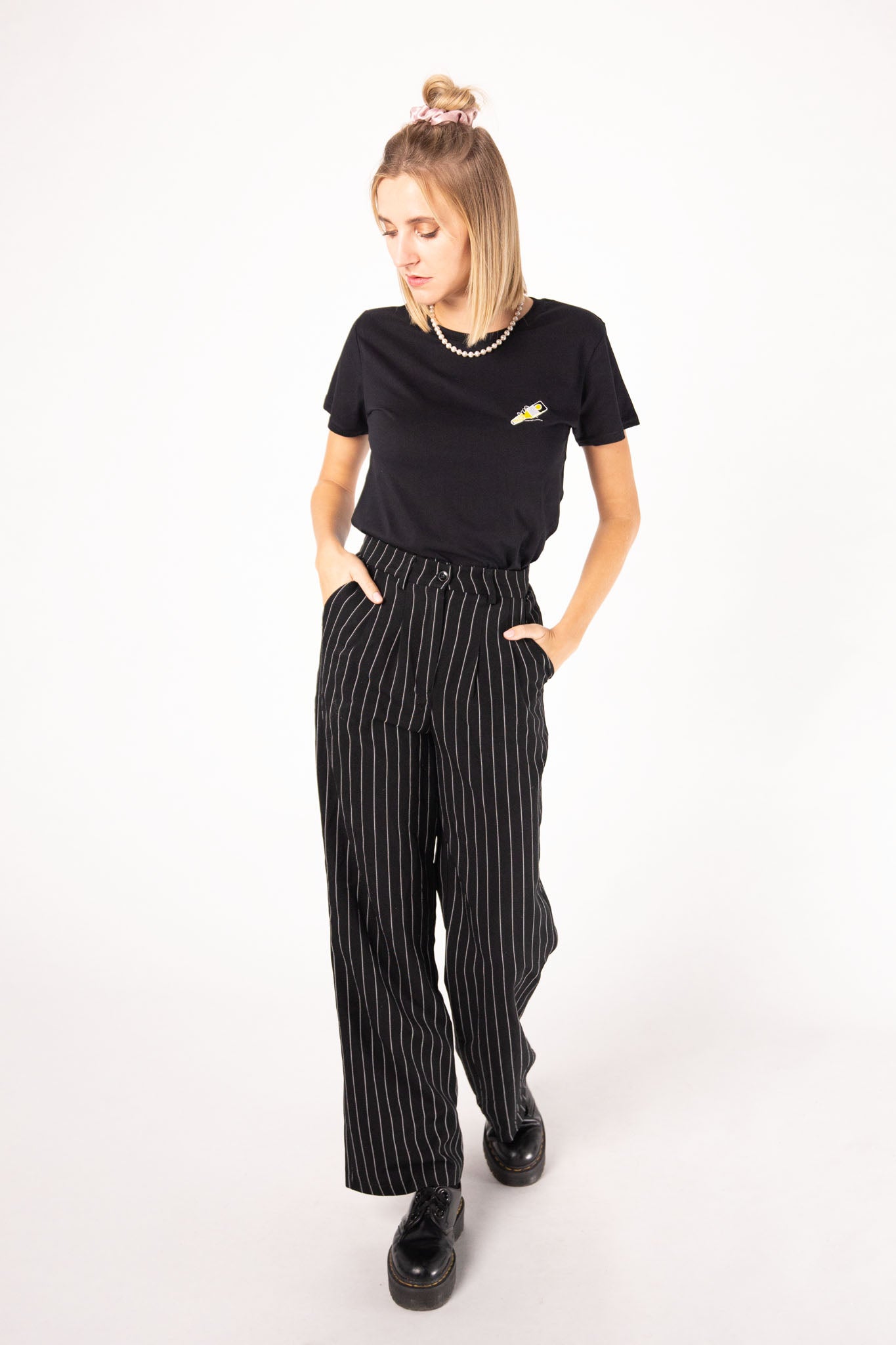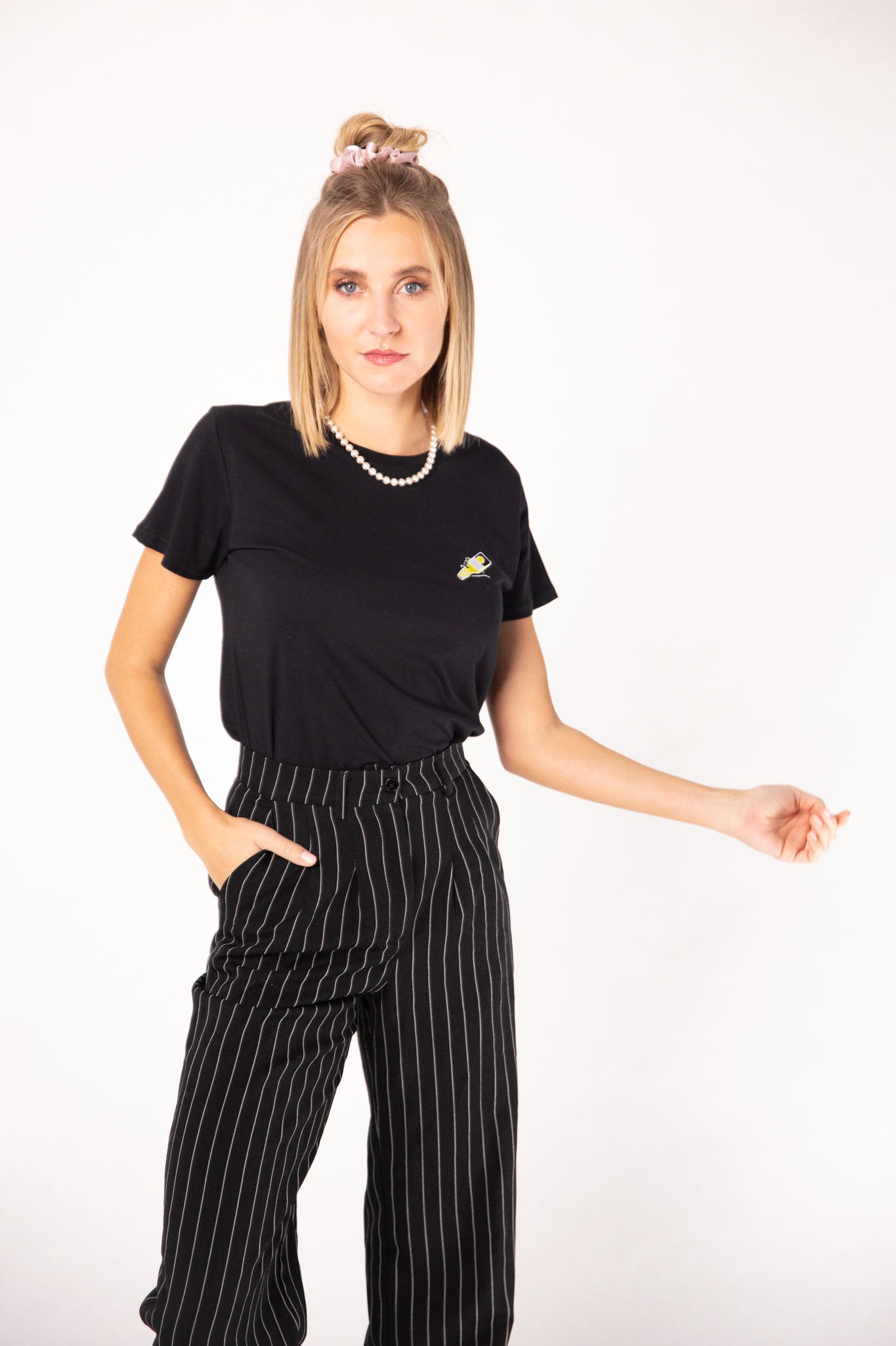 T-shirt da donna in cotone biologico di altissima qualità, con tessuto estremamente confortevole (155 g/m²) e disegno del tornado ricamato.