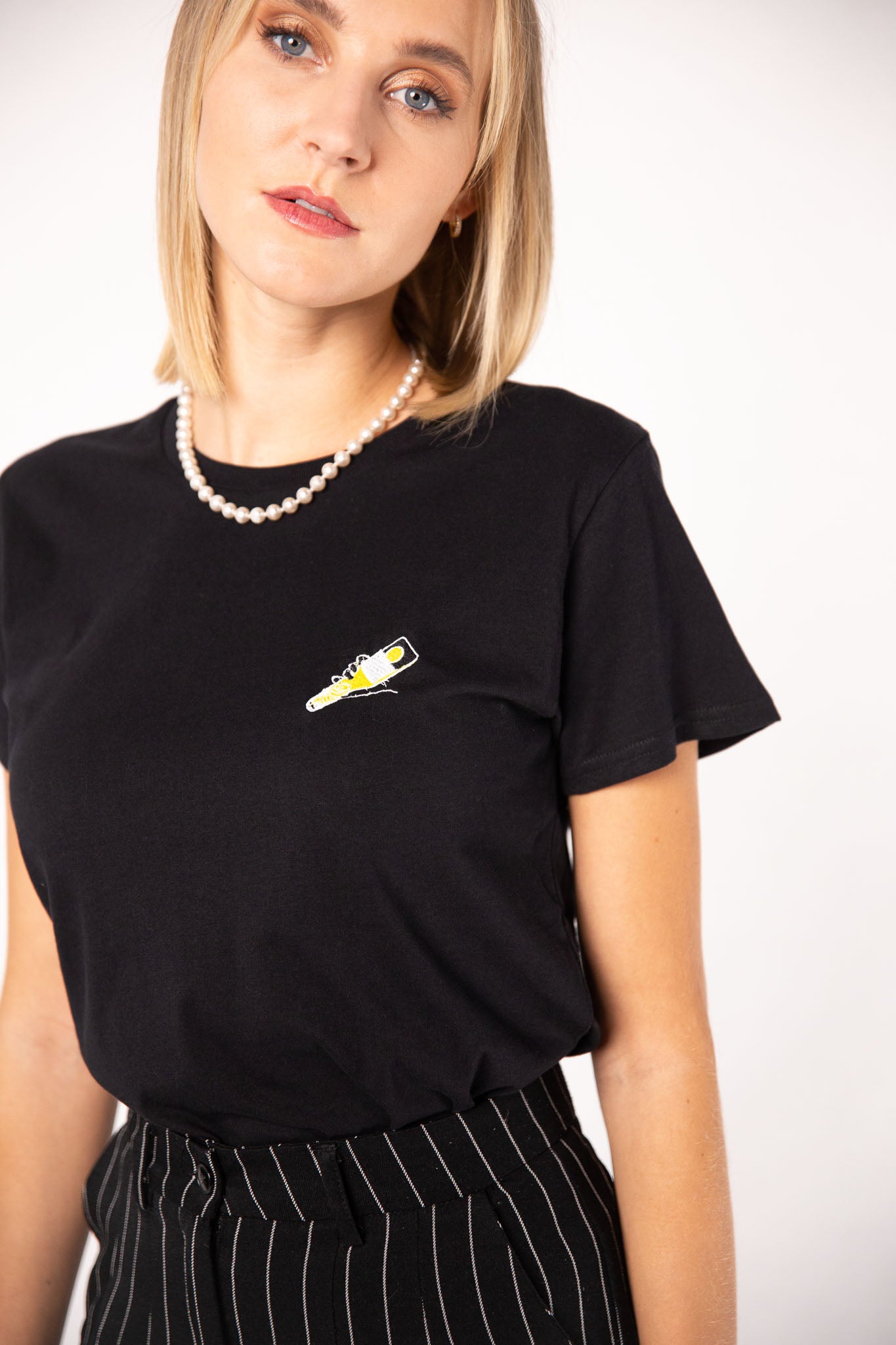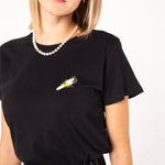 Maglietta da donna in cotone organico con ricamo Tornado