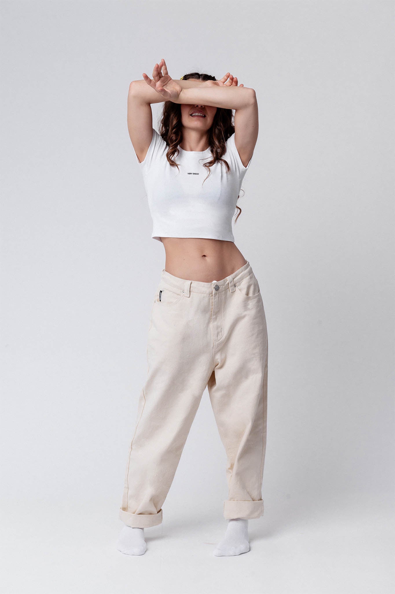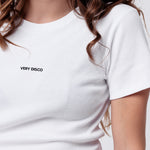 Super hochwertiges Bio Baumwoll Cropped T-Shirt mit gesticktem Very Disco Schriftzug in drei verschiedenen Schnitt-Varianten: Ripped, Regular & Oversized
