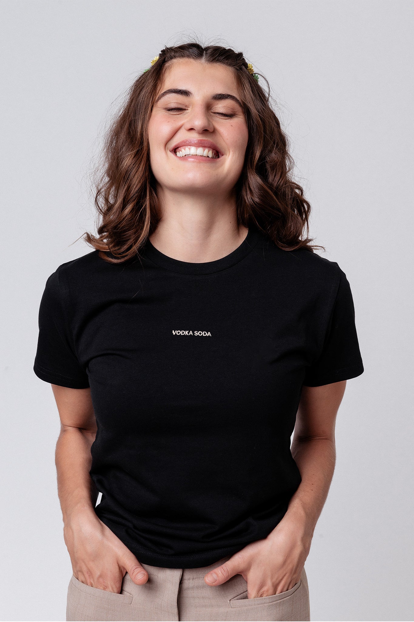 Maglietta da donna in cotone organico con ricamo Vodka Soda |