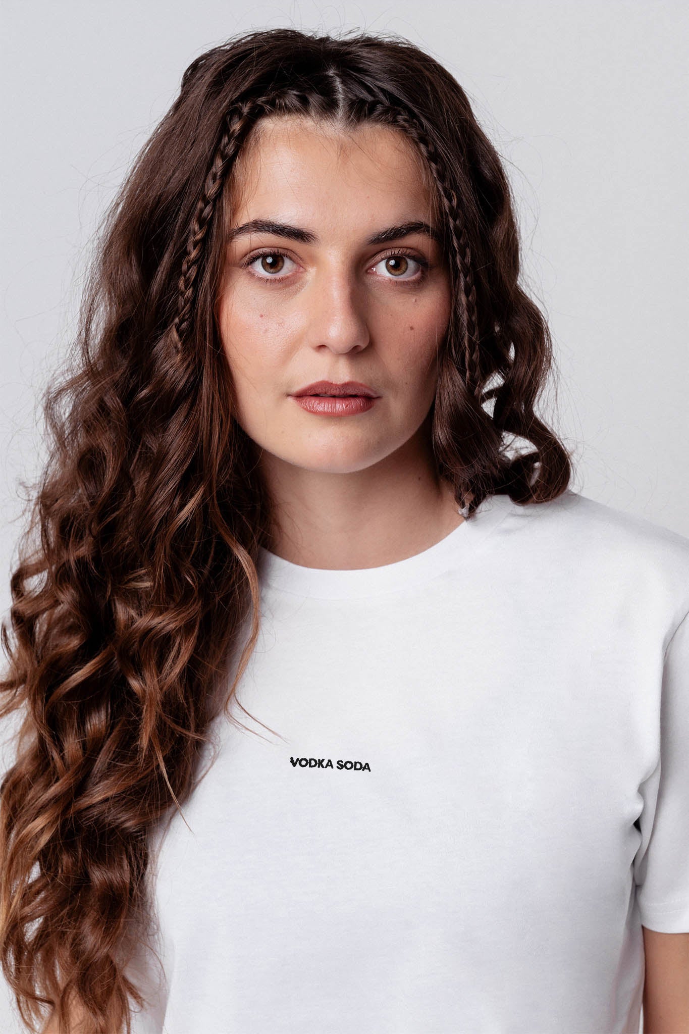 Besticktes Bio Baumwoll Unisex T-Shirt mit schwerem Stoff (190gsm) und gesticktem VODKA SODA Schriftzug