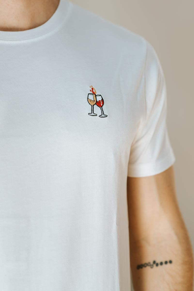 Besticktes Bio Baumwoll Unisex T-Shirt mit schwerem Stoff (190gsm) und gesticktem Wein Duett Design