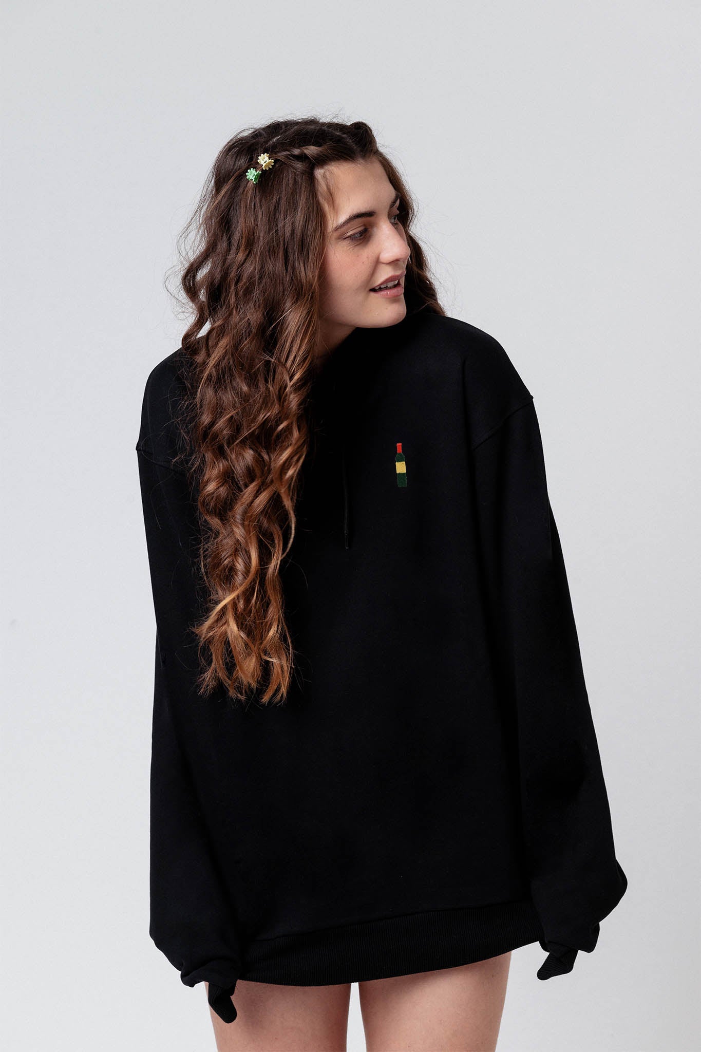 Weinflasche | Bestickter Bio-Baumwoll Unisex Hoodie