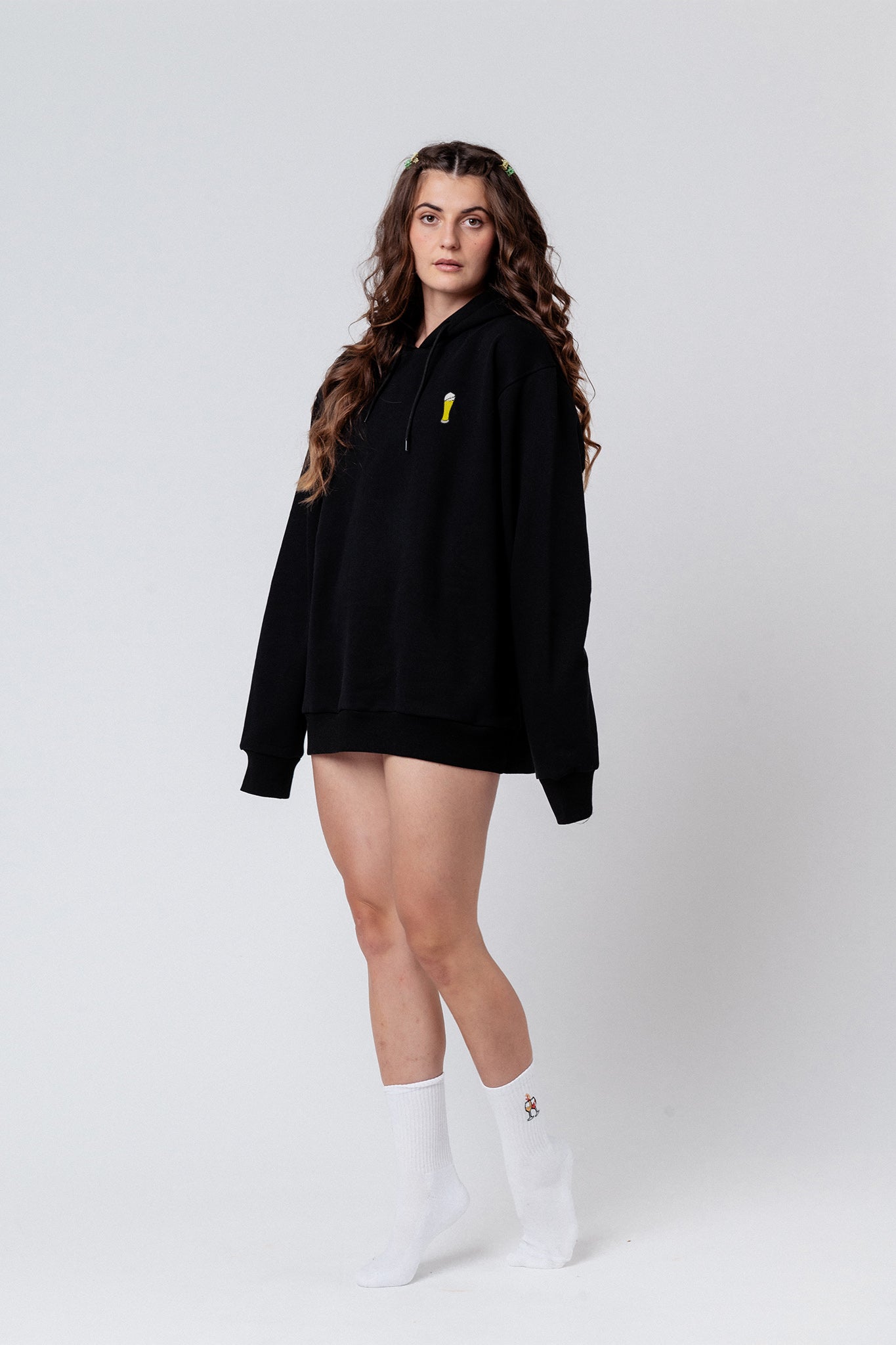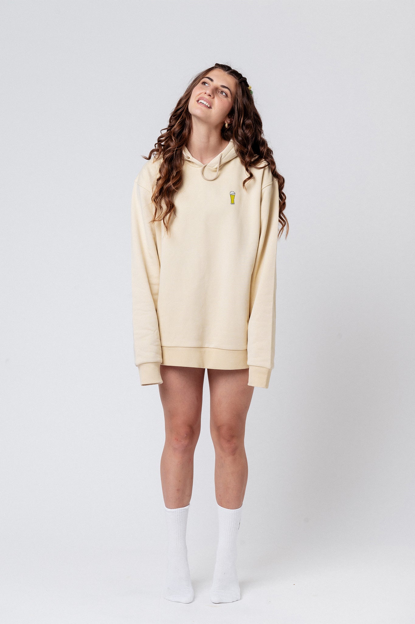 Super hochwertiger Bio Baumwoll Unisex Hoodie mit schwerem Stoff (350gsm) und gesticktem Weißbier Design