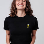 Besticktes Bio Baumwoll Frauen T-Shirt mit extrem angenehmen Stoff (155gsm) und gesticktem Weißbier Design