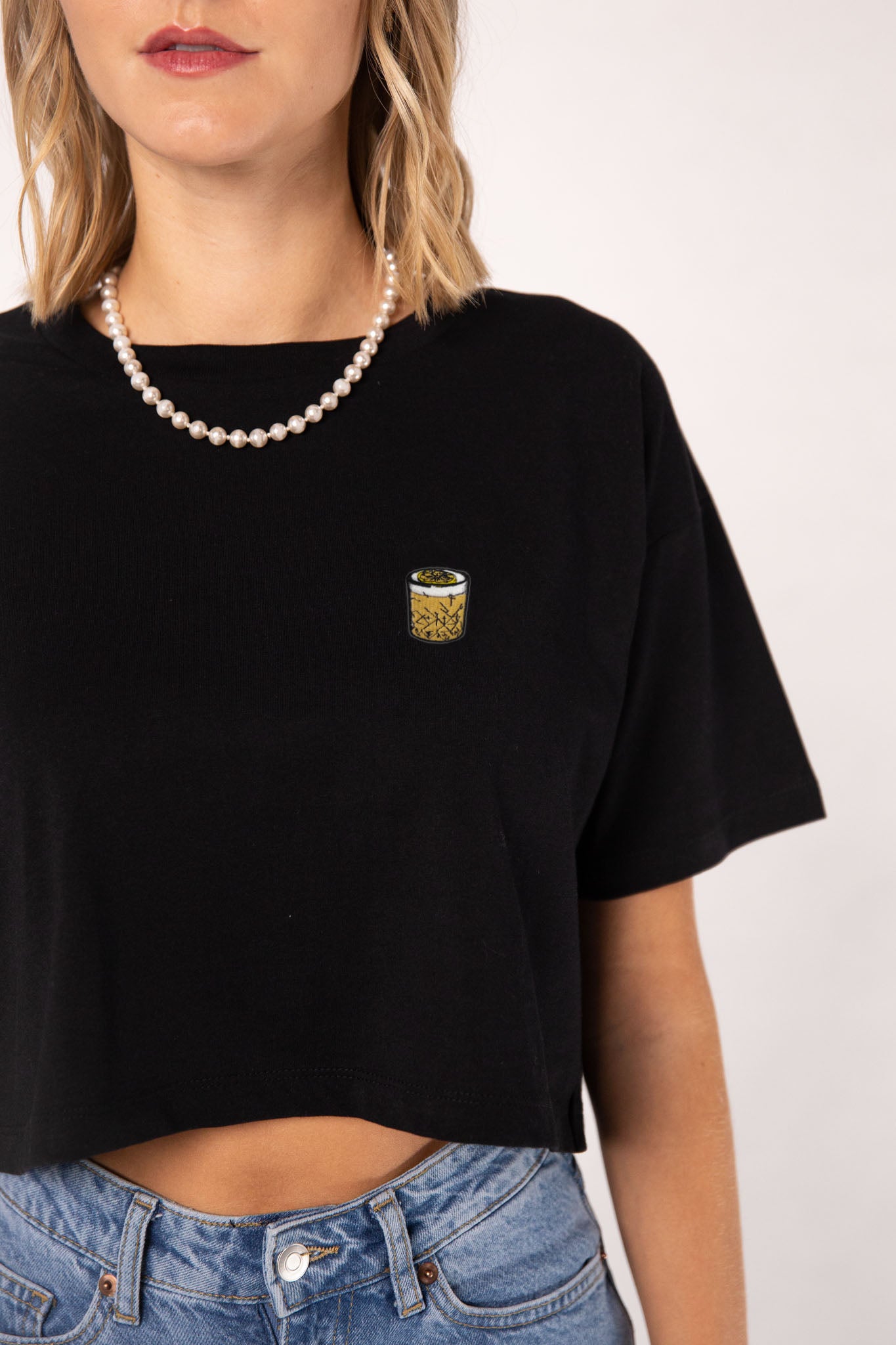 Whisky Sour | Besticktes Bio Baumwoll Cropped T-Shirt