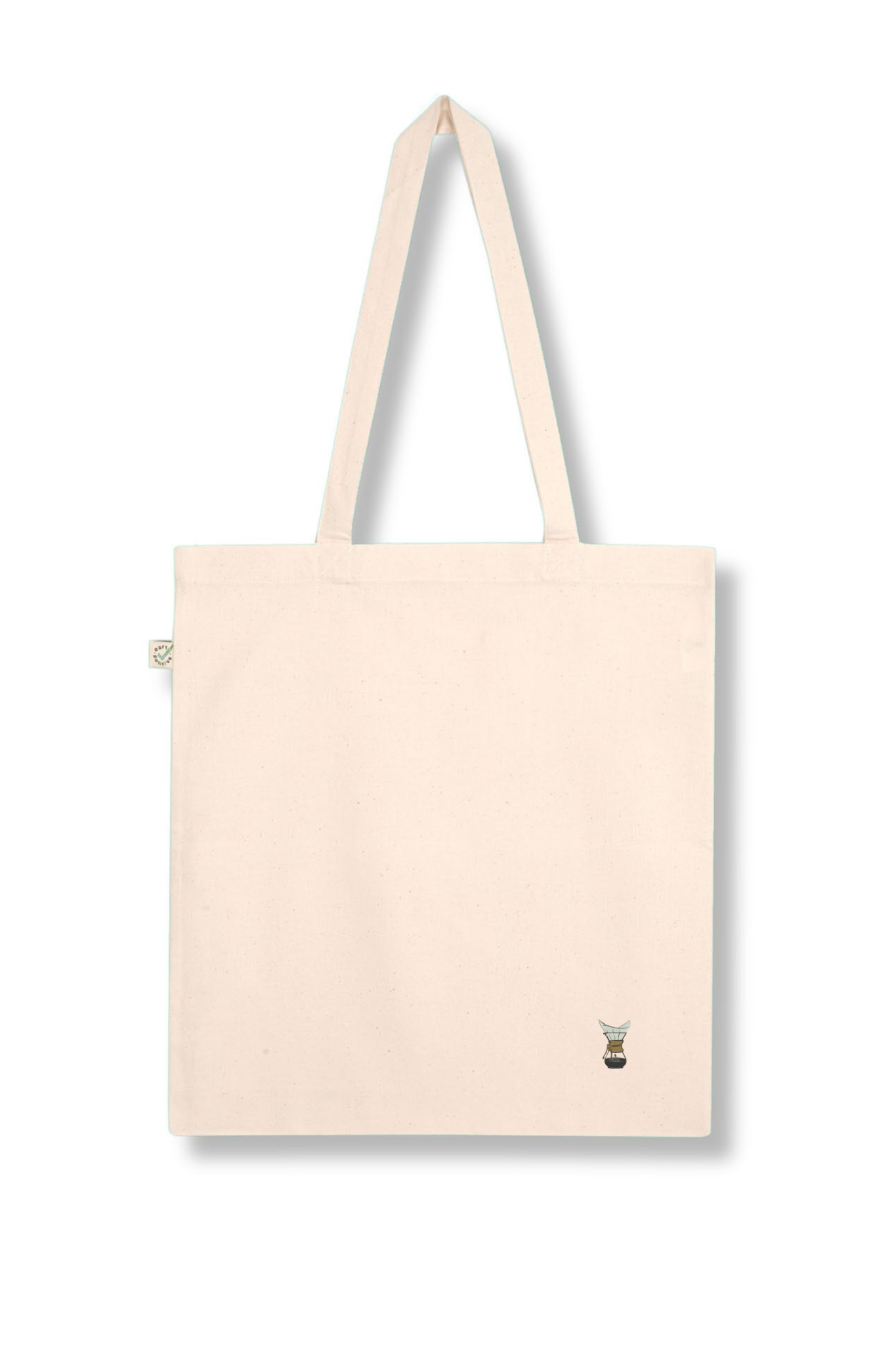 Bestickte, fair produzierte Bio-Baumwoll-Tragetasche im Sophisticated Filter Design.
