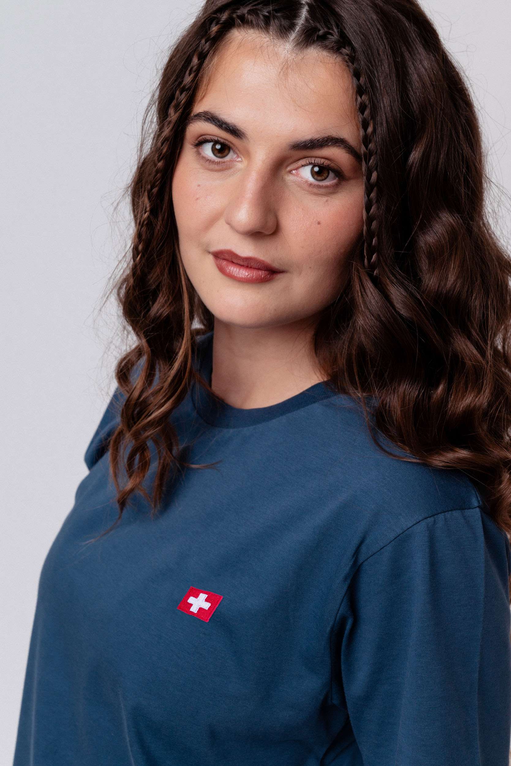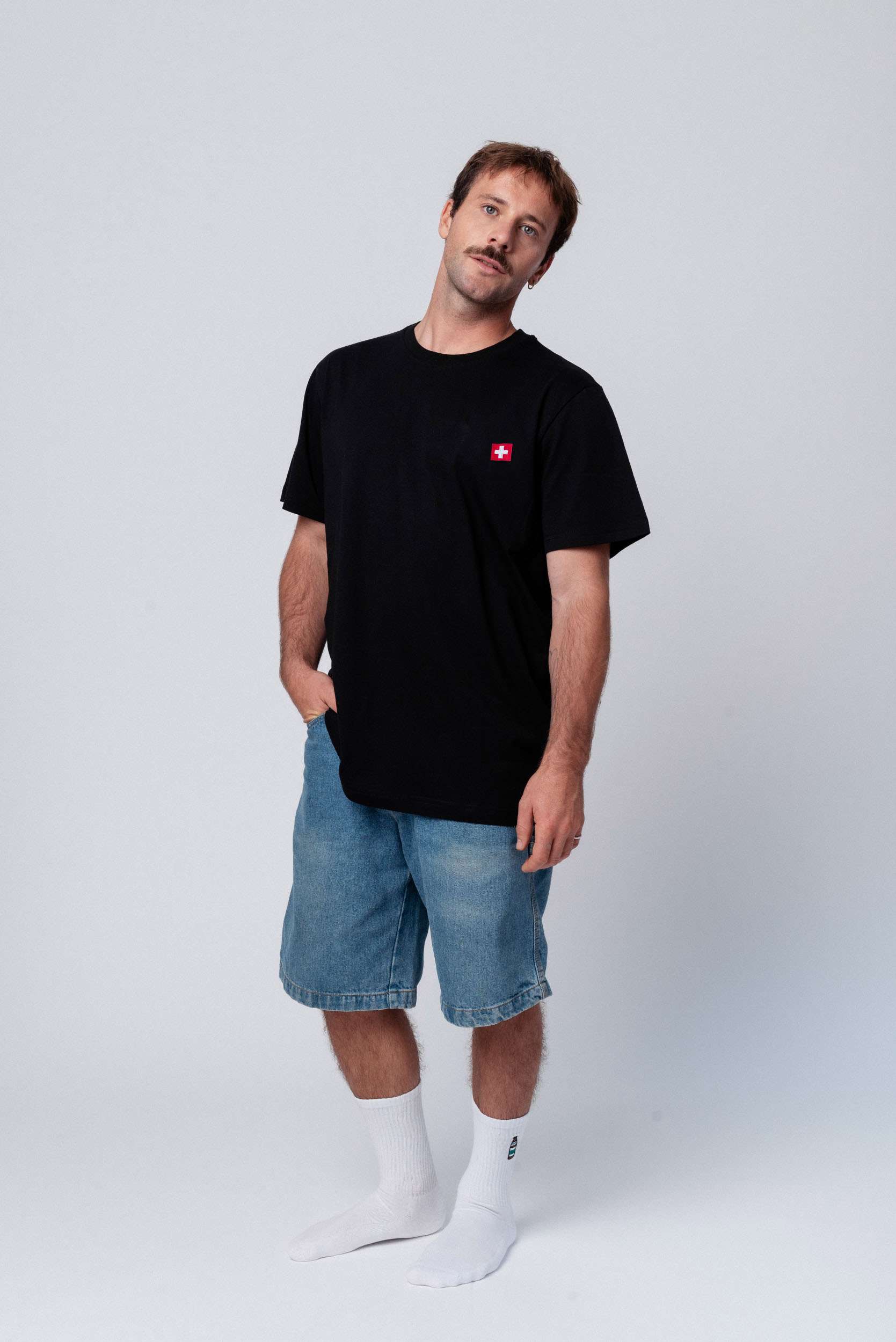 Schweiz | Minimal Flag – Besticktes Bio-Baumwoll Fan Shirt