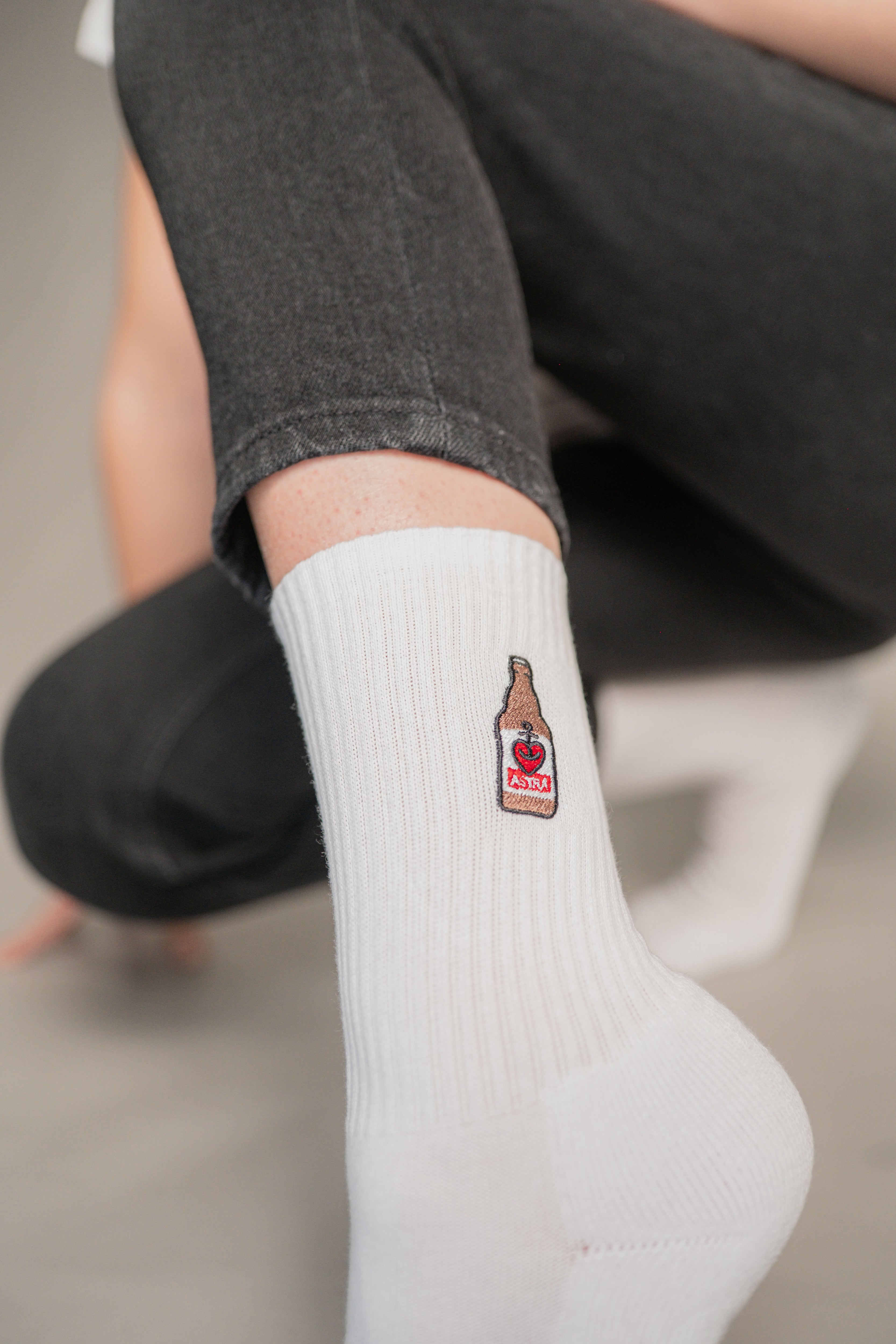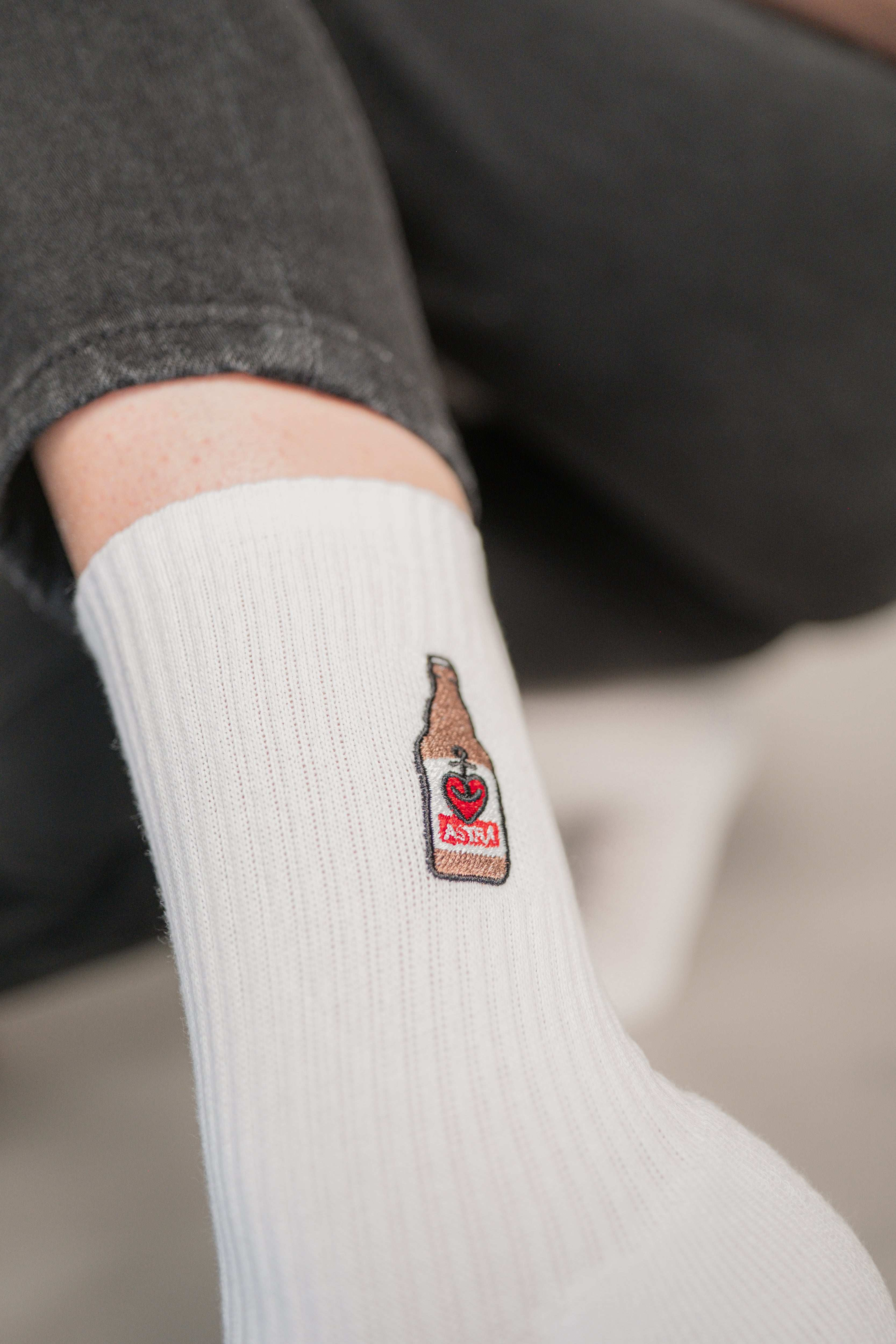 Super hochwertige Bio Baumwoll Crew Socken mit offiziell gesticktem ASTRA Design