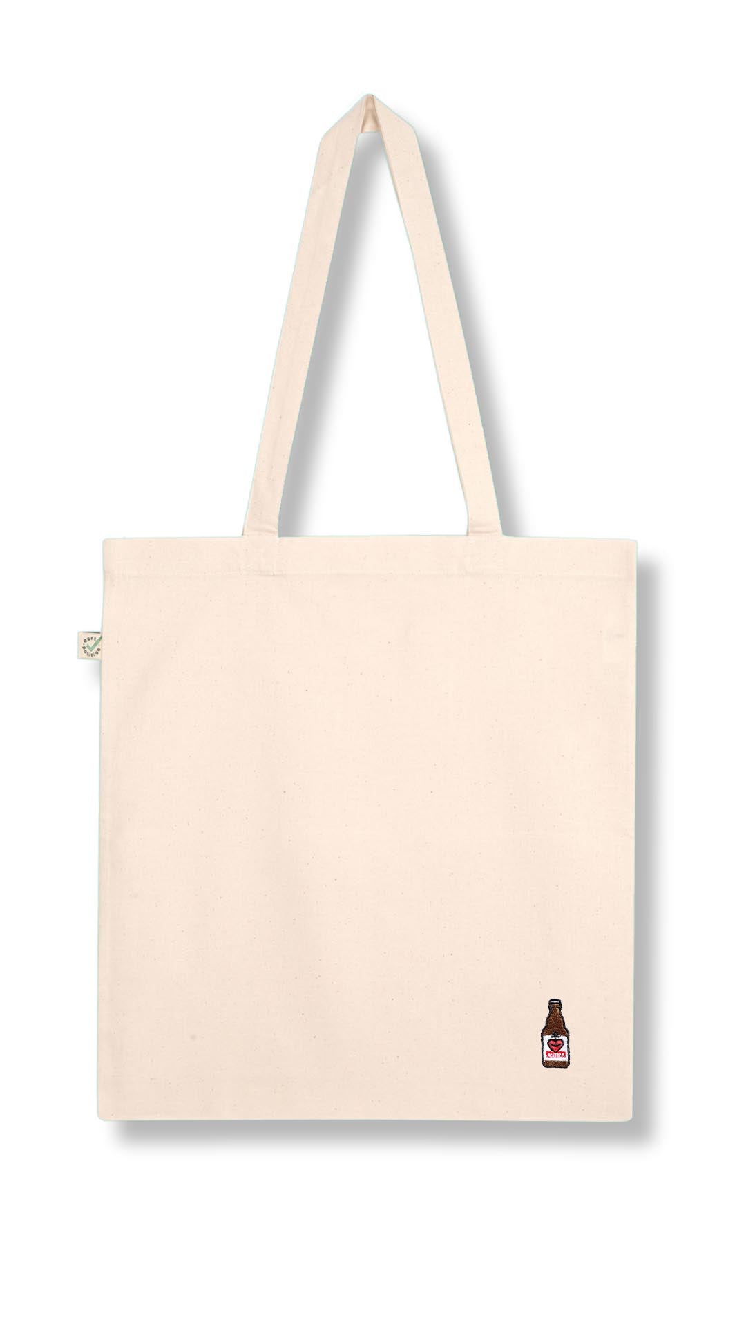Bestickte, fair produzierte Bio-Baumwoll-Tragetasche im offiziellen Astra Design.