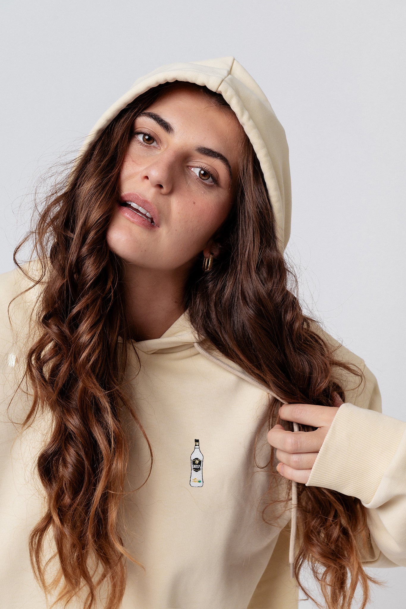 Super hochwertiger Bio Baumwoll Unisex Hoodie mit schwerem Stoff (350gsm) und der offiziellen gestickten Mangaroca Batida de Côco®  Bottiglia