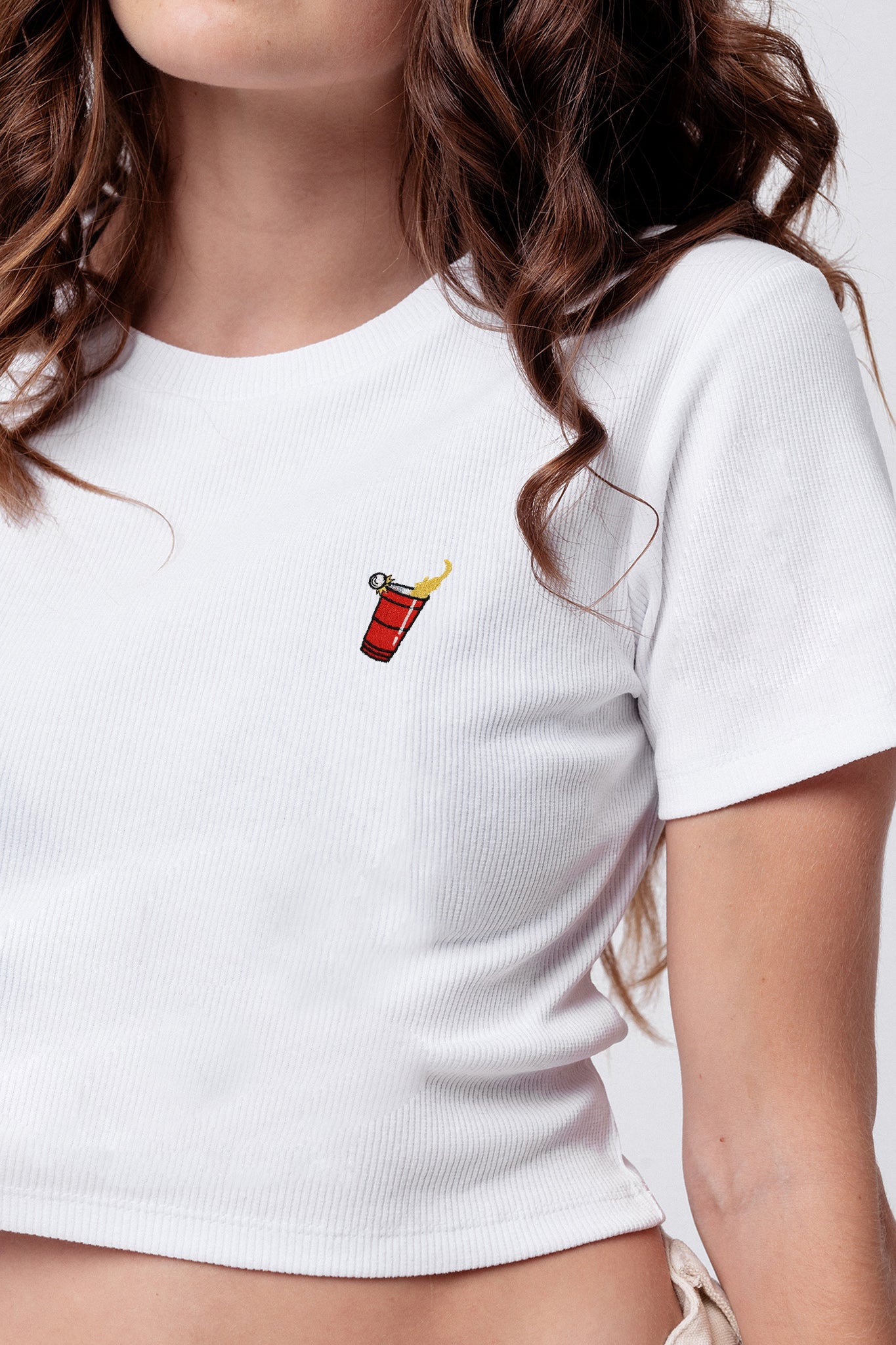 Beerpong Randtreffer | Besticktes Bio Baumwoll Cropped T-Shirt