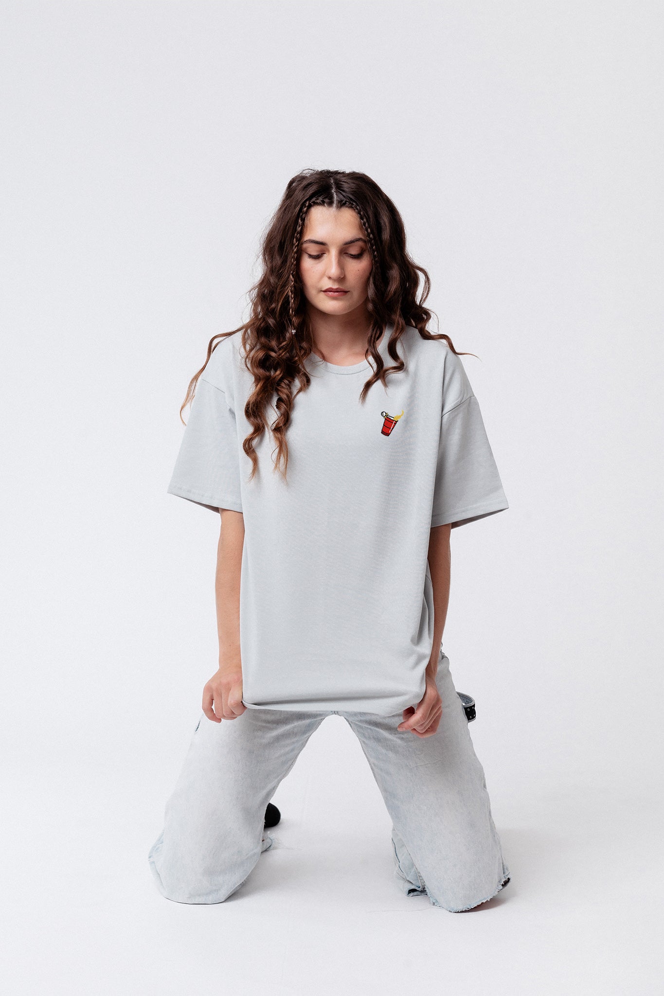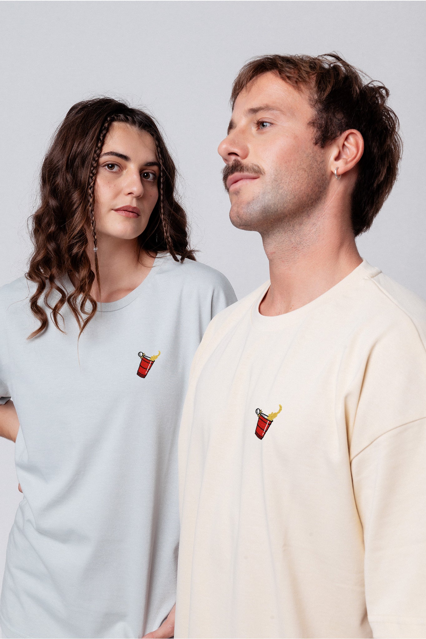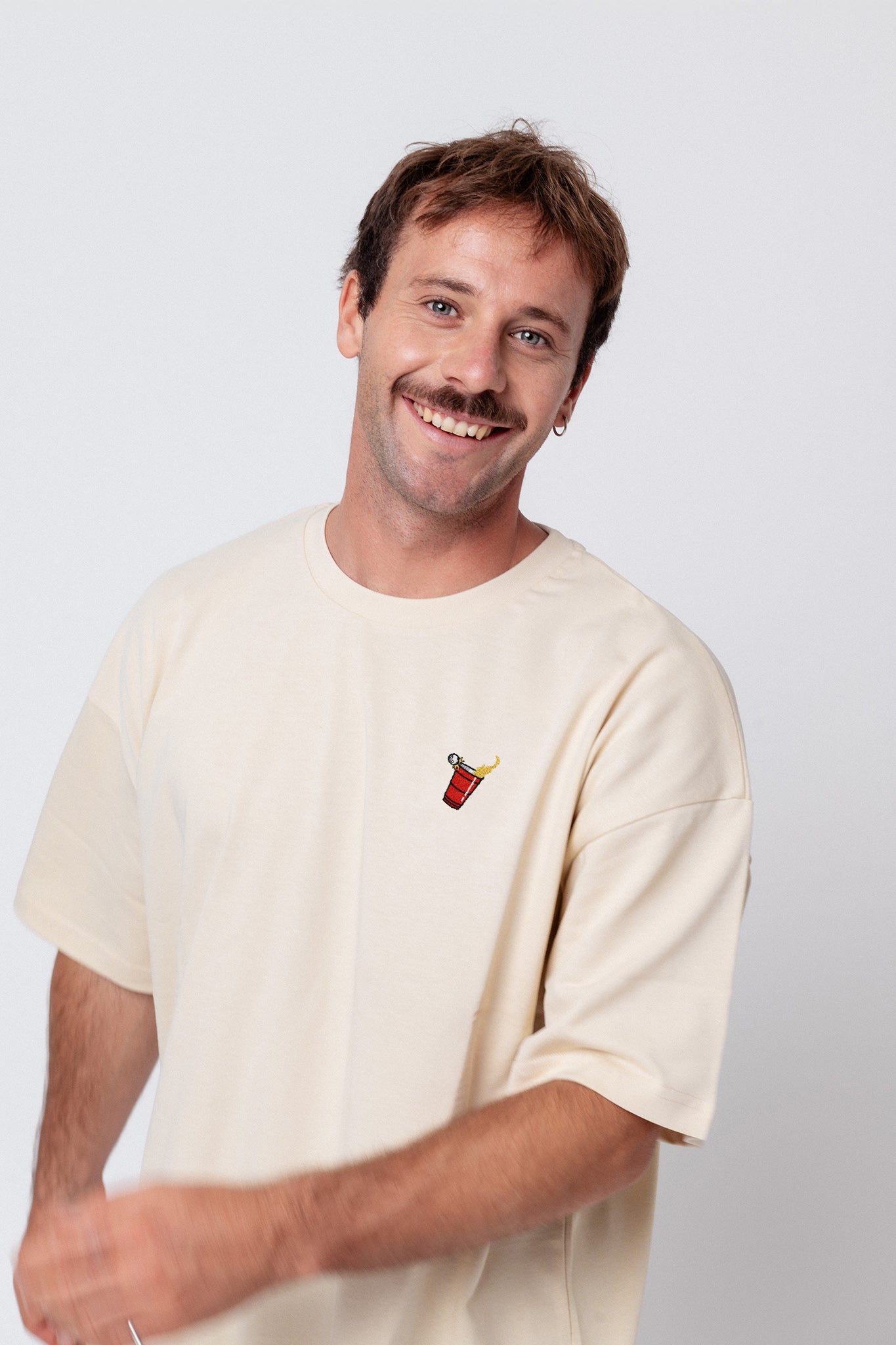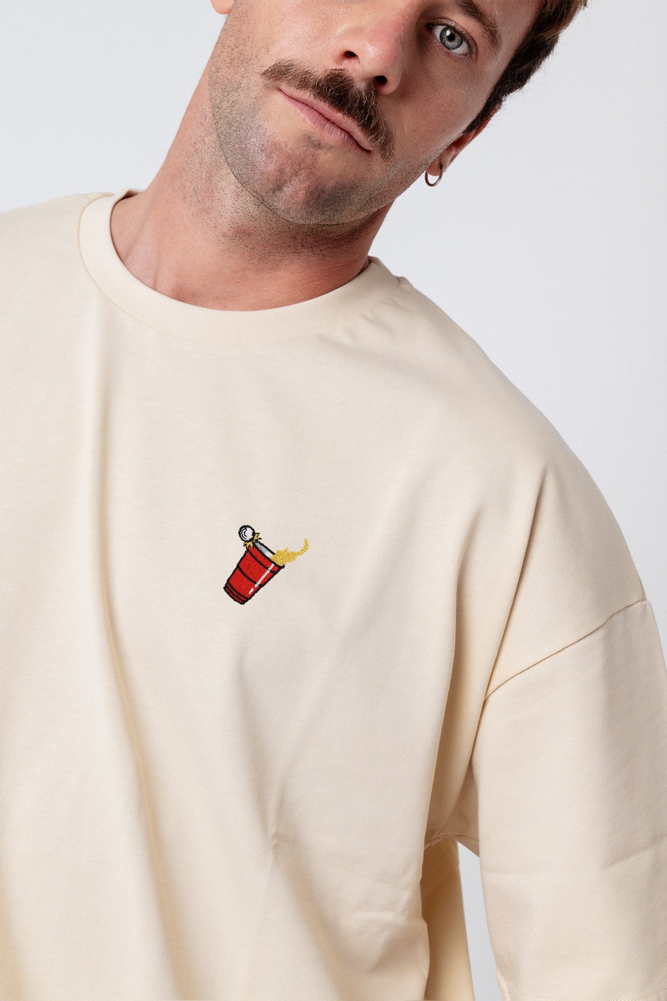 Heavy Oversized Bio Baumwoll T-Shirt mit extra schwerem Stoff (230gsm) und gesticktem Beerpong Randtreffer Design
