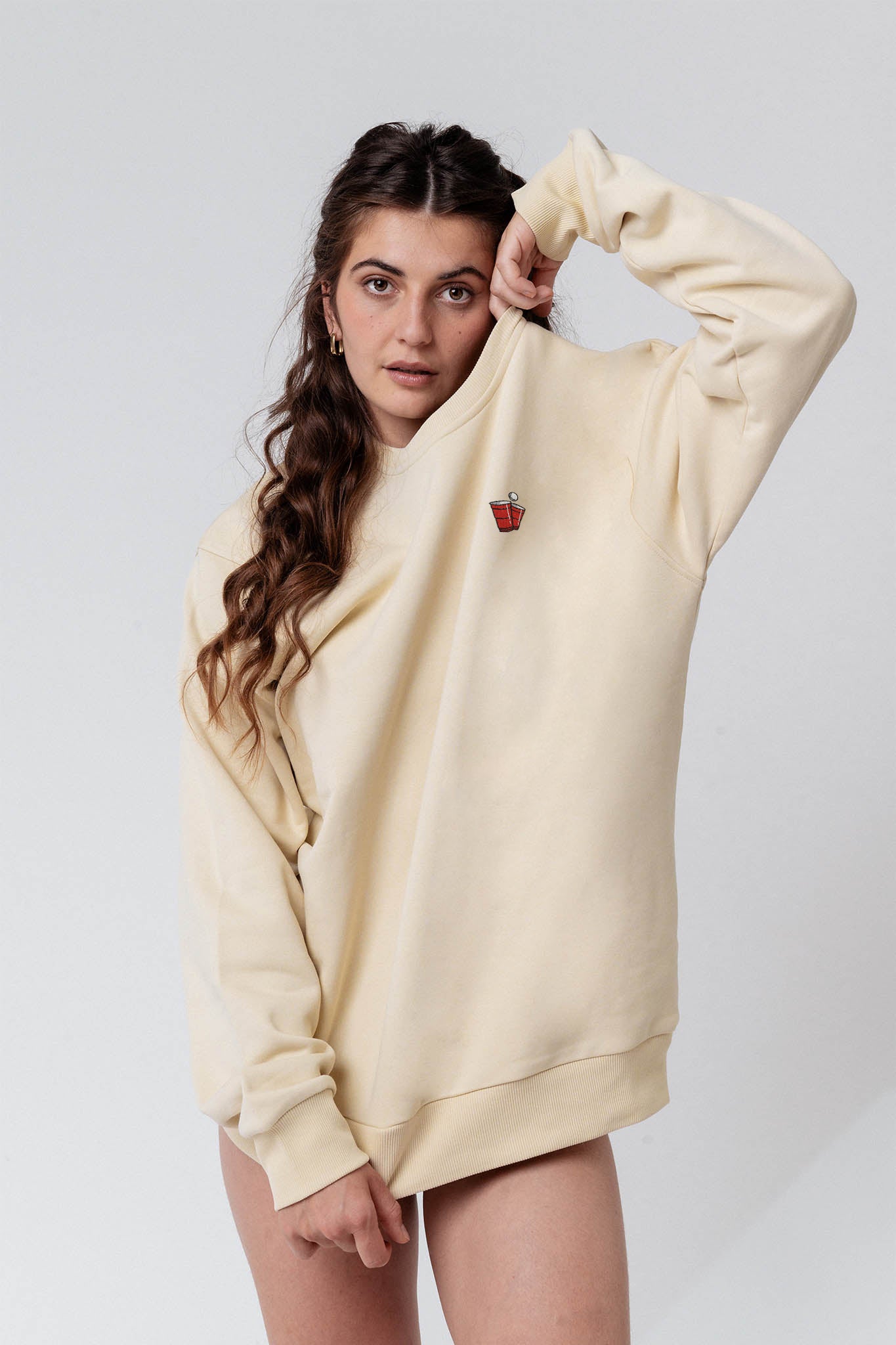 Bestickter Bio Baumwoll Unisex Pullover mit schwerem Stoff (320gsm) und gesticktem Beerpong Design