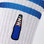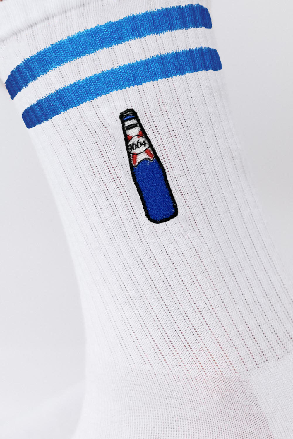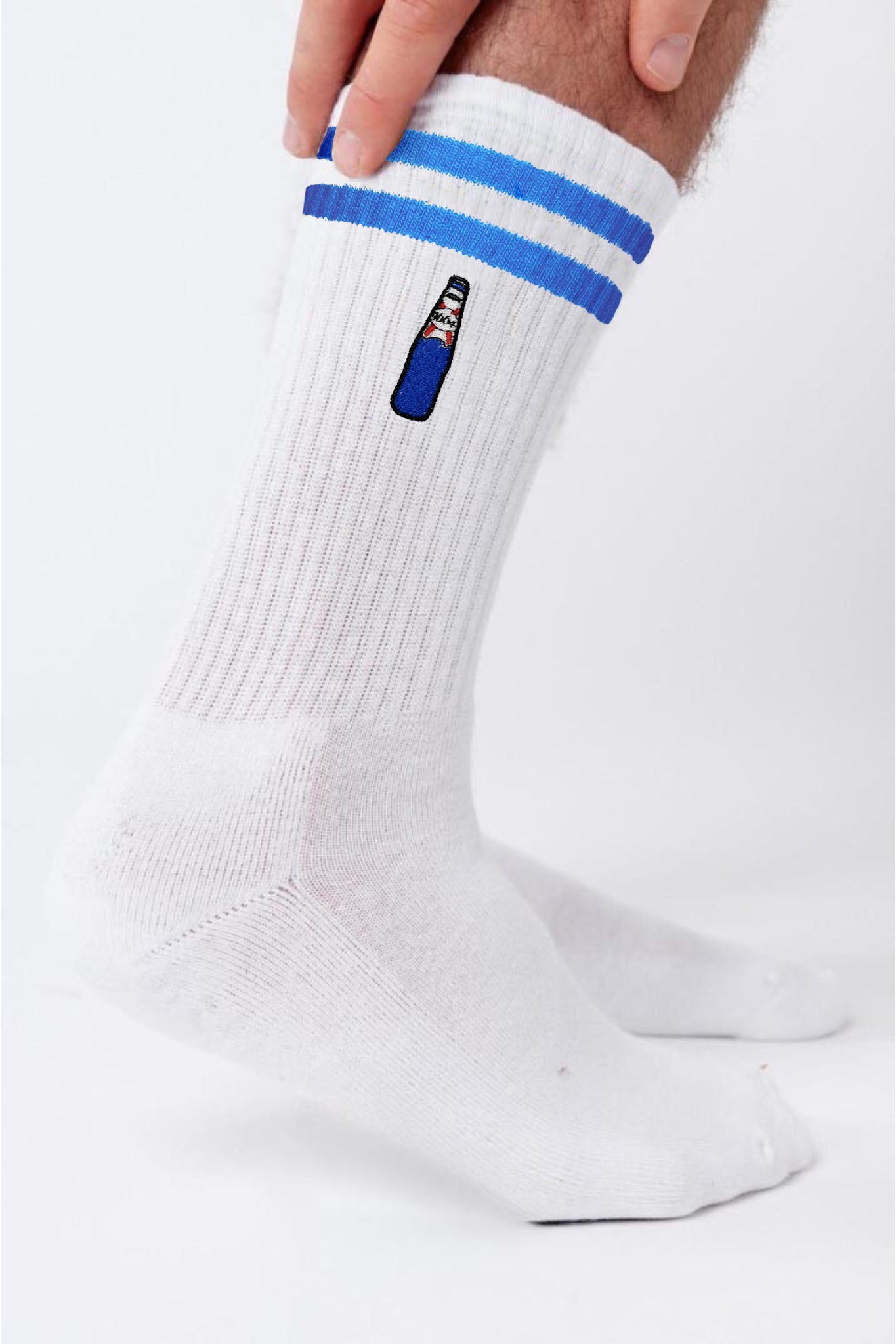 Zwei edle blau-weiße Streifen machen das Design komplett und bringen dir das französische Savoir-vivre direkt an die Füße. 🇫🇷🧦🍺