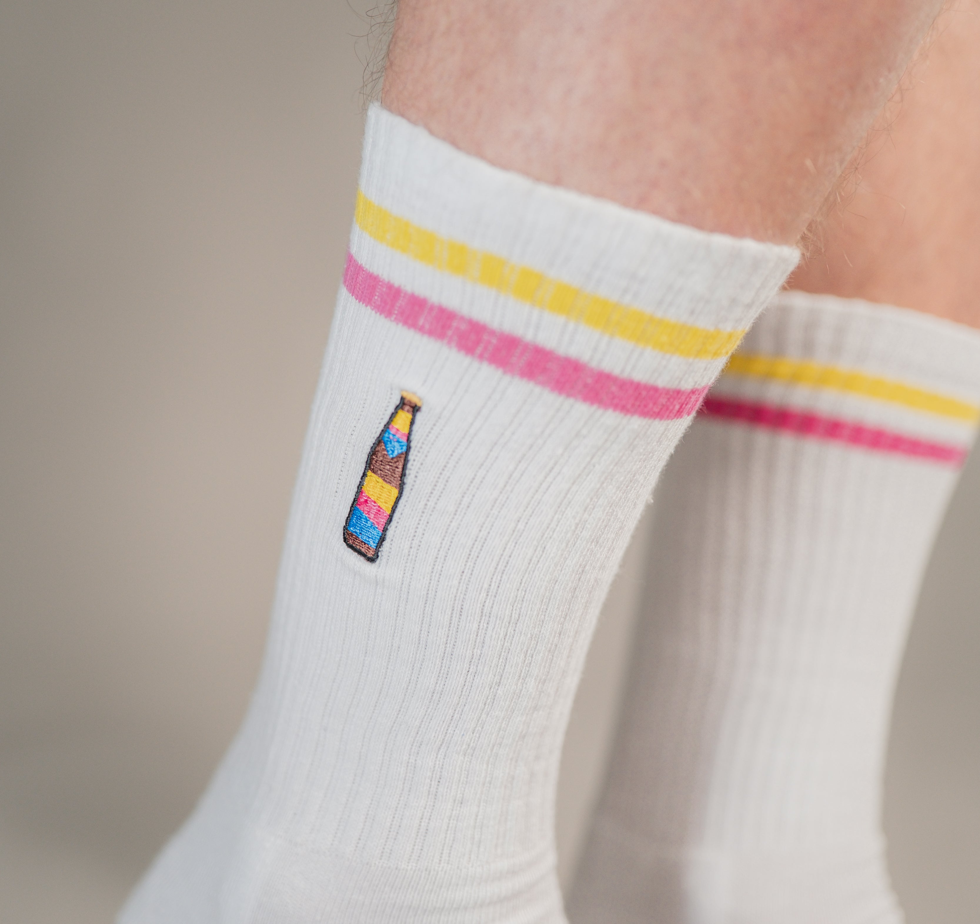 Wir sind nicht nur Mode – wir sind ein Lifestyle. Jedes Teil, das wir kreieren, ist inspiriert von ikonischen Getränken, gefertigt aus 100 % Bio-Baumwolle und bestickt mit hochwertigem, ökologischem Garn. Unsere Designs wie Aperol Spritz, Lillet Wildberry oder Jägermeister bestechen durch einen maximalen Detailgrad auf dezenter Größe auf Socken und anderen Textilien. Unser Fokus liegt auf Qualität, Authentizität und einer Leidenschaft für Kreativität.
