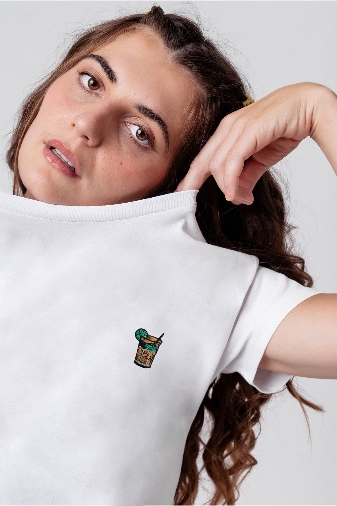 Besticktes Bio Baumwoll Frauen T-Shirt mit extrem angenehmen Stoff (155gsm) und gesticktem Cuba Libre Design