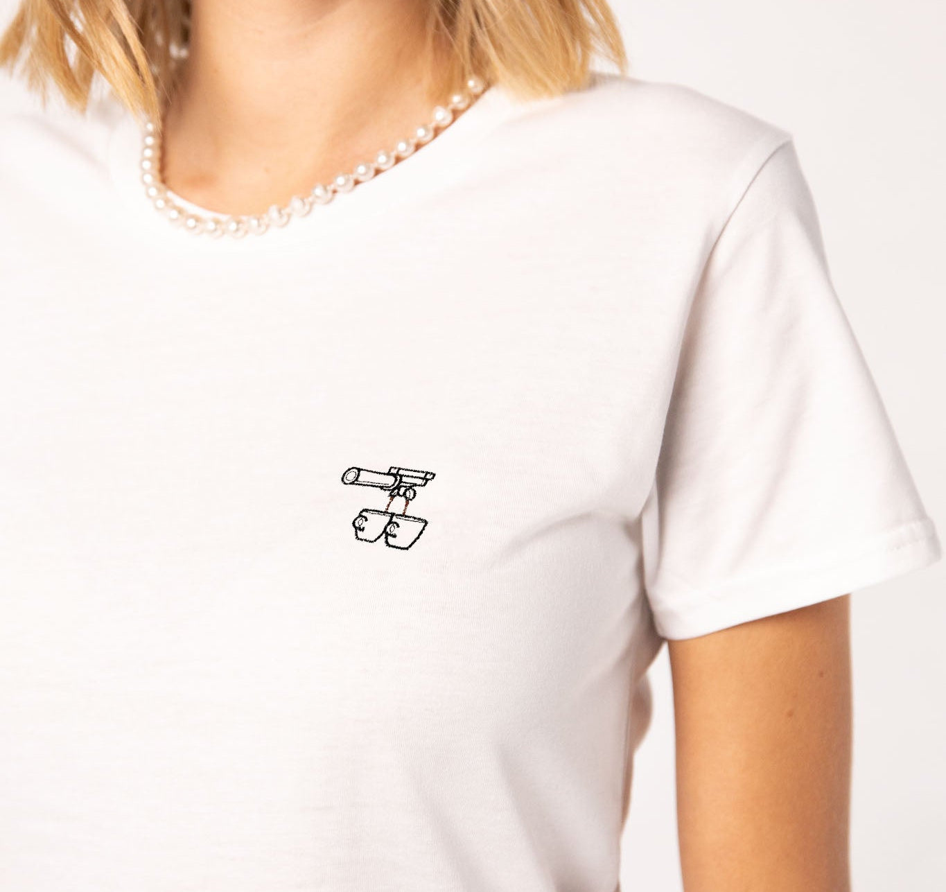 Jedes Design bei Fashion Drinks wird mit viel Liebe zum Detail handgezeichnet. Danach wird es sorgfältig auf unsere Stickmaschinen programmiert und übertragen. Während des Designprozesses führen wir im Schnitt 5-10 Probe-Stickvorgänge durch, um sicherzustellen, dass das Ergebnis 100% genau und perfekt ist. Unsere Spezialität ist die feine, detaillierte Stickerei im Bereich von 4-5 cm, auf die wir besonders stolz sind. So garantieren wir, dass jedes T-Shirt ein einzigartiges Kunstwerk ist, das höchste Qualität bietet.