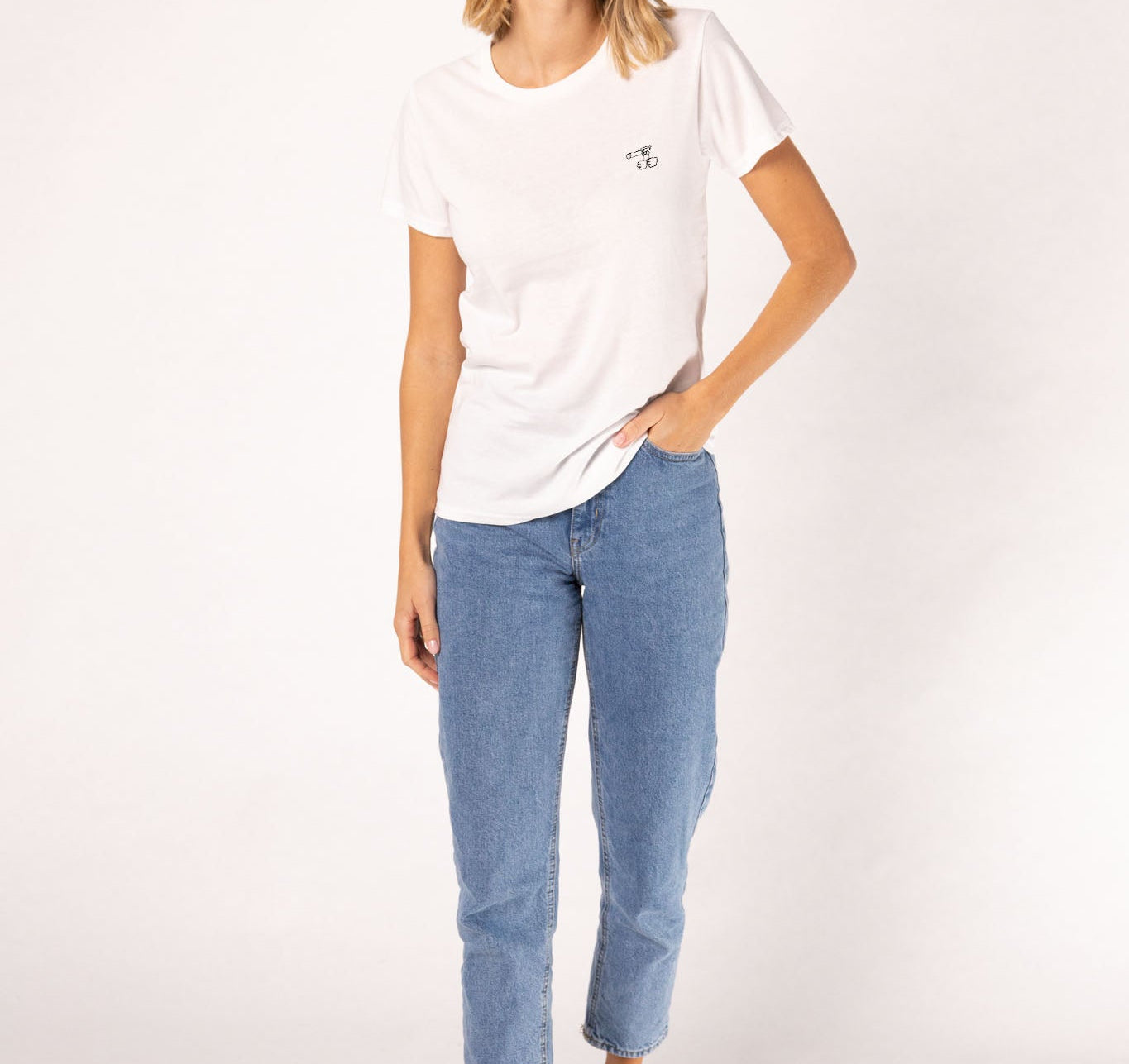 Hochwertige Stickerei auf weicher, atmungsaktiver Bio-Baumwolle.