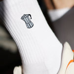 Super hochwertige Bio Baumwoll Crew Socken mit gesticktem Espressokocher Design