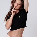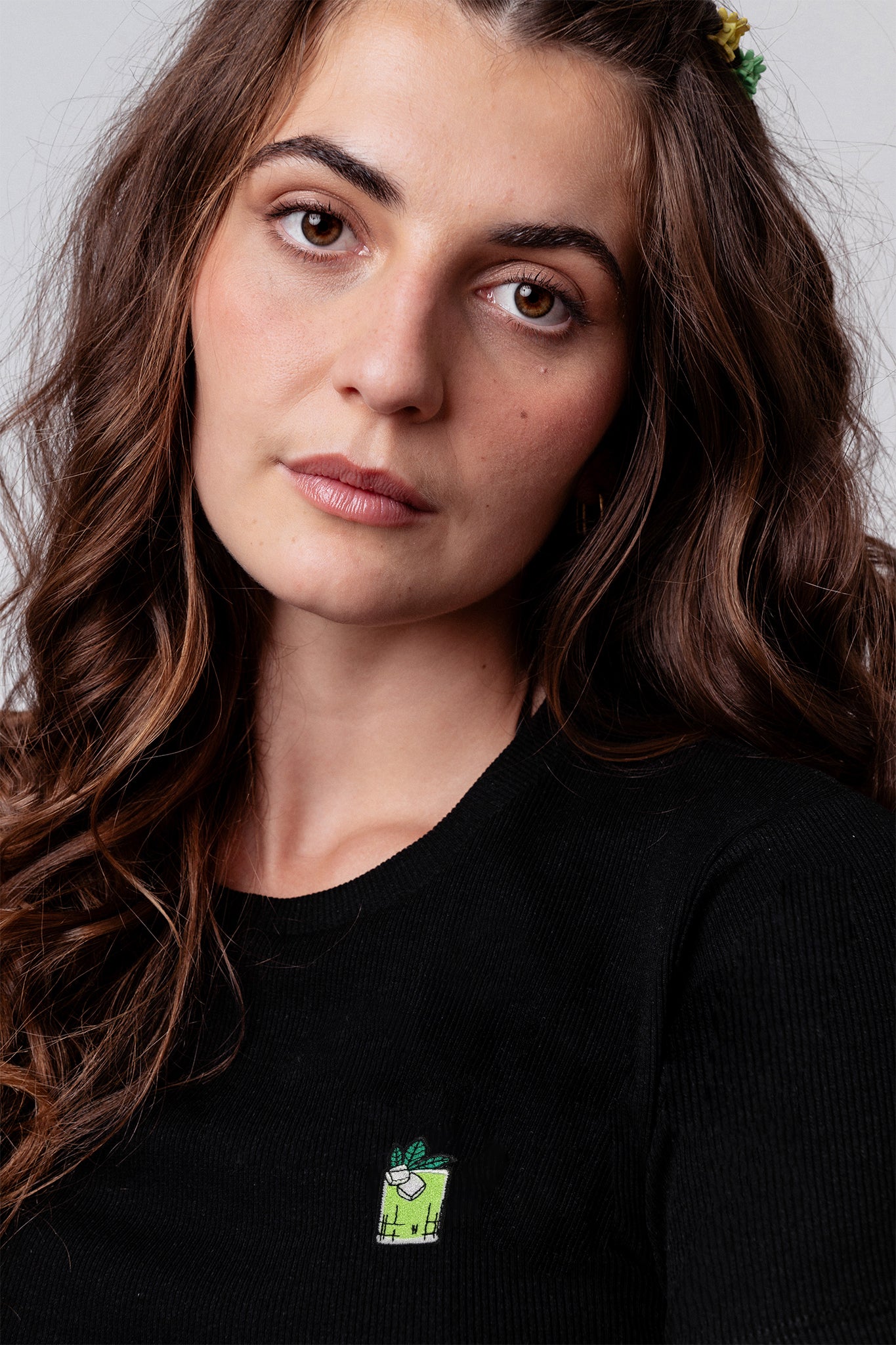 Gin Basil Smash | Besticktes Bio Baumwoll Cropped T-Shirt