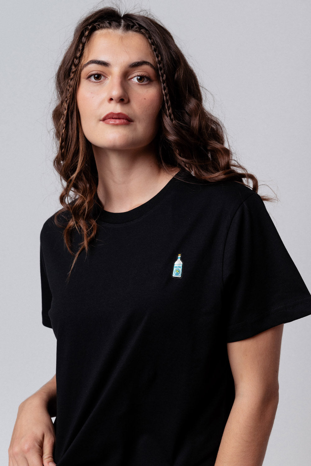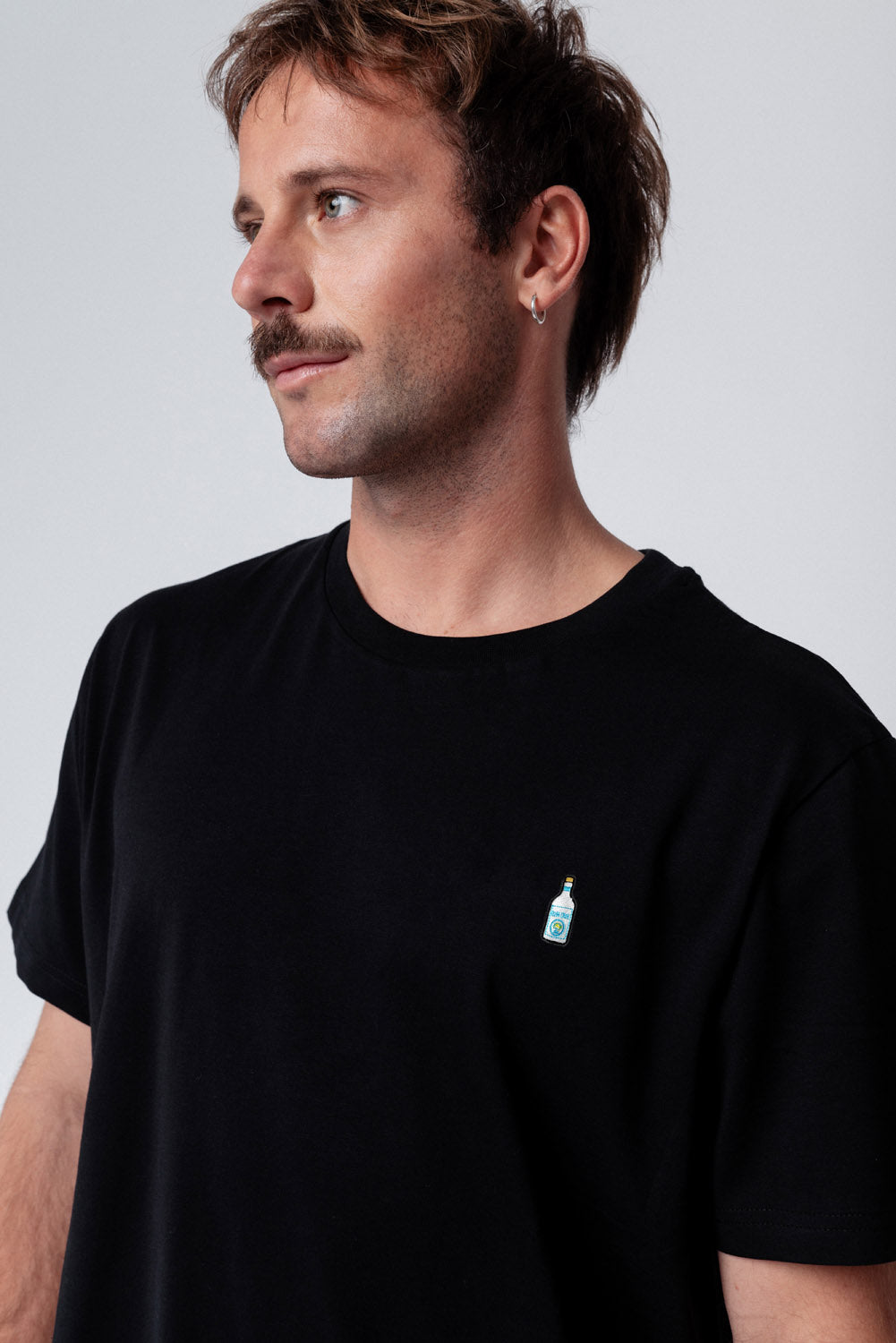 Super hochwertiges Bio Baumwoll Unisex T-Shirt mit schwerem Stoff (190gsm) und der offiziell gestickten GIN SUL Flasche