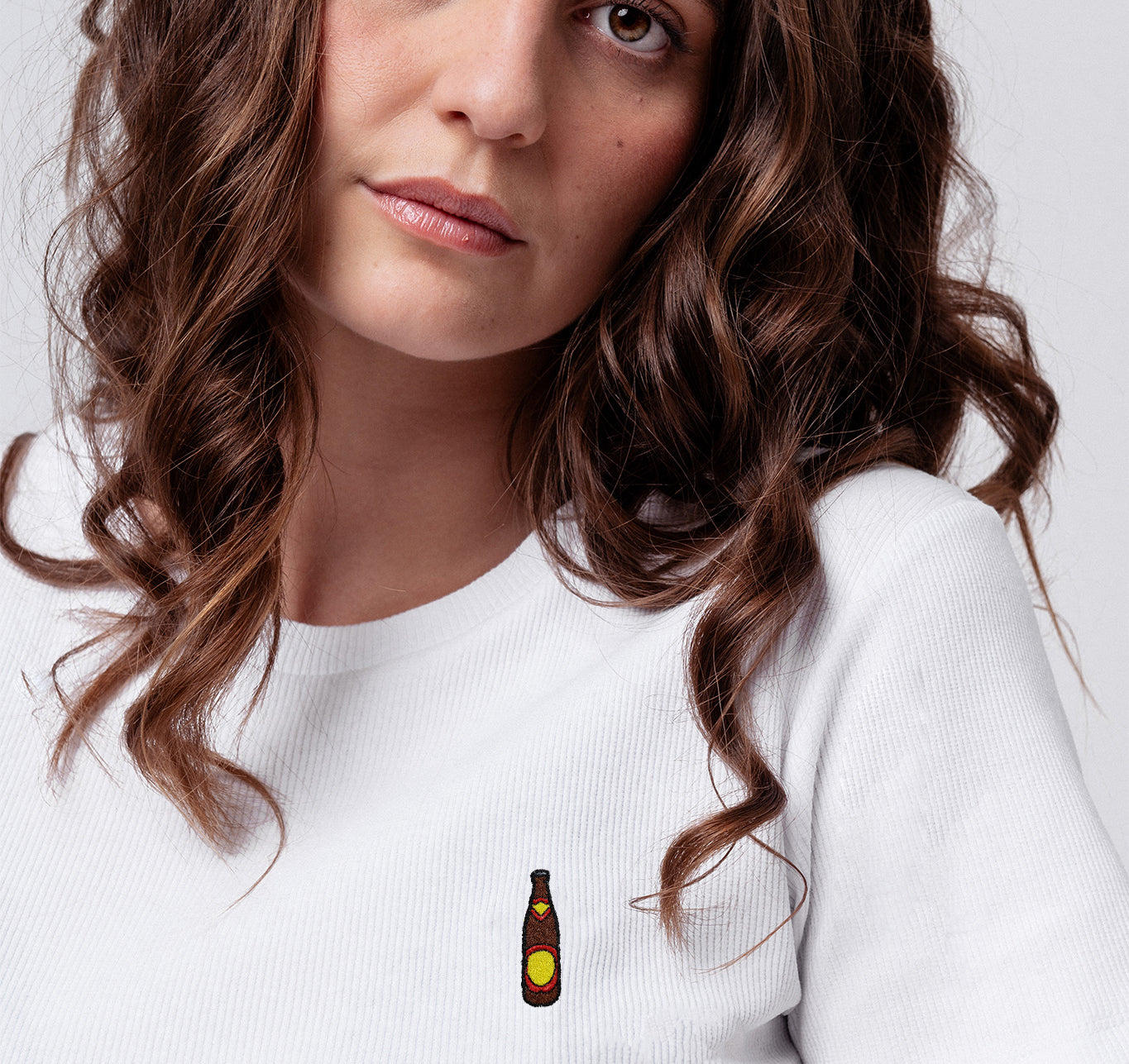 Hochwertige Stickerei auf weicher, atmungsaktiver Bio-Baumwolle.