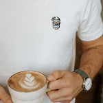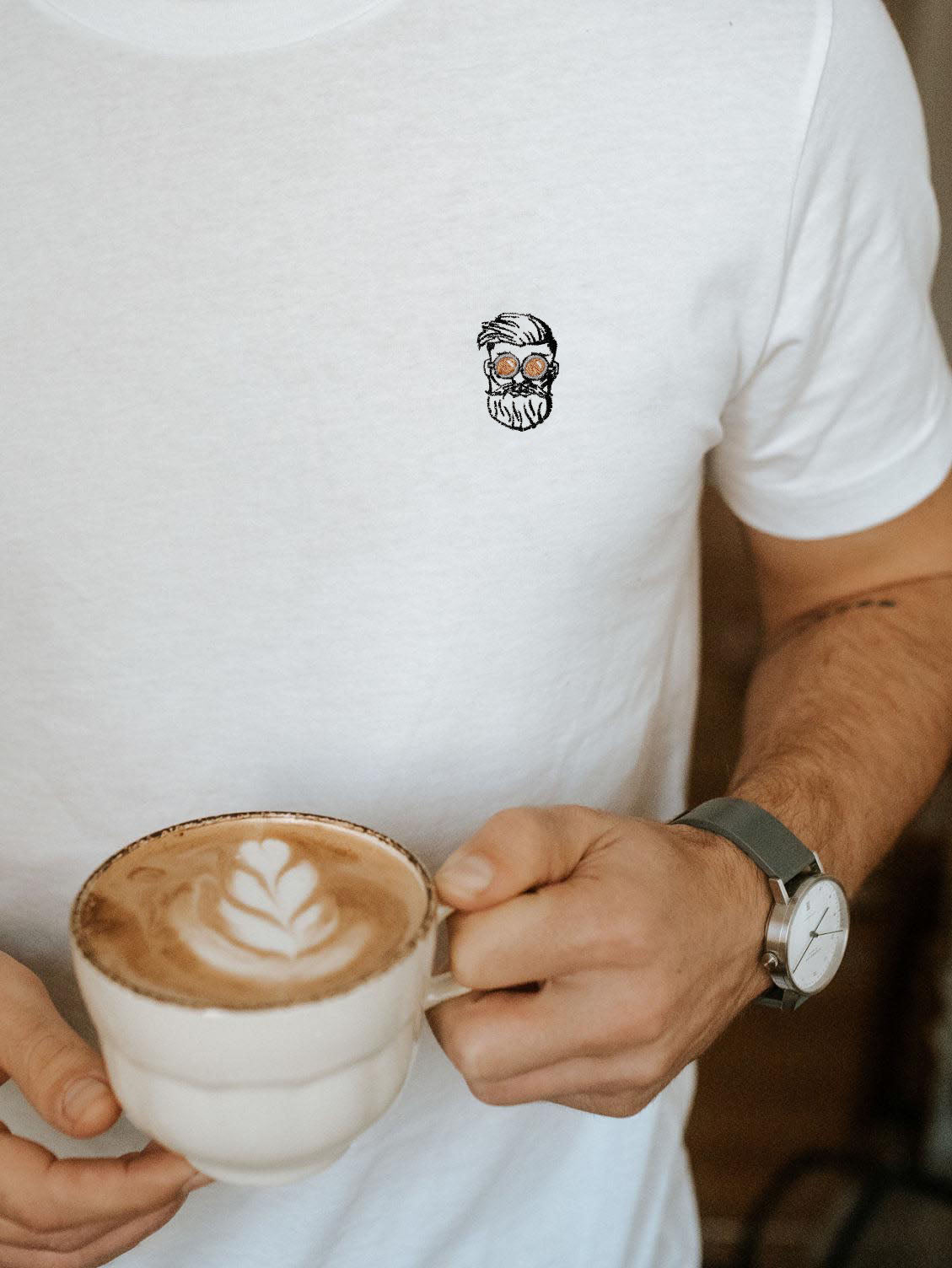 Super hochwertiges Bio Baumwoll Unisex T-Shirt mit schwerem Stoff (190gsm) und gesticktem Kaffee Hipster Design