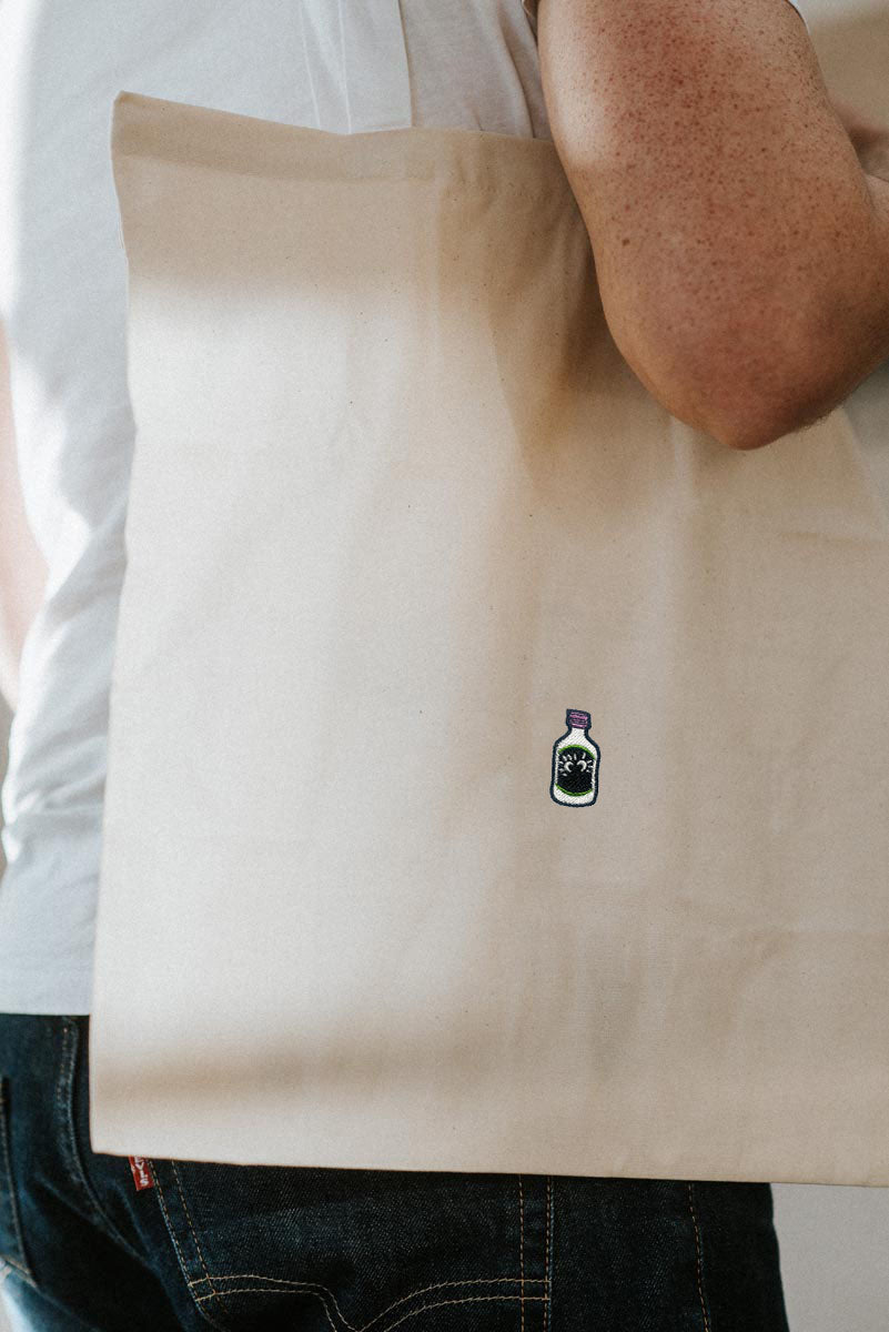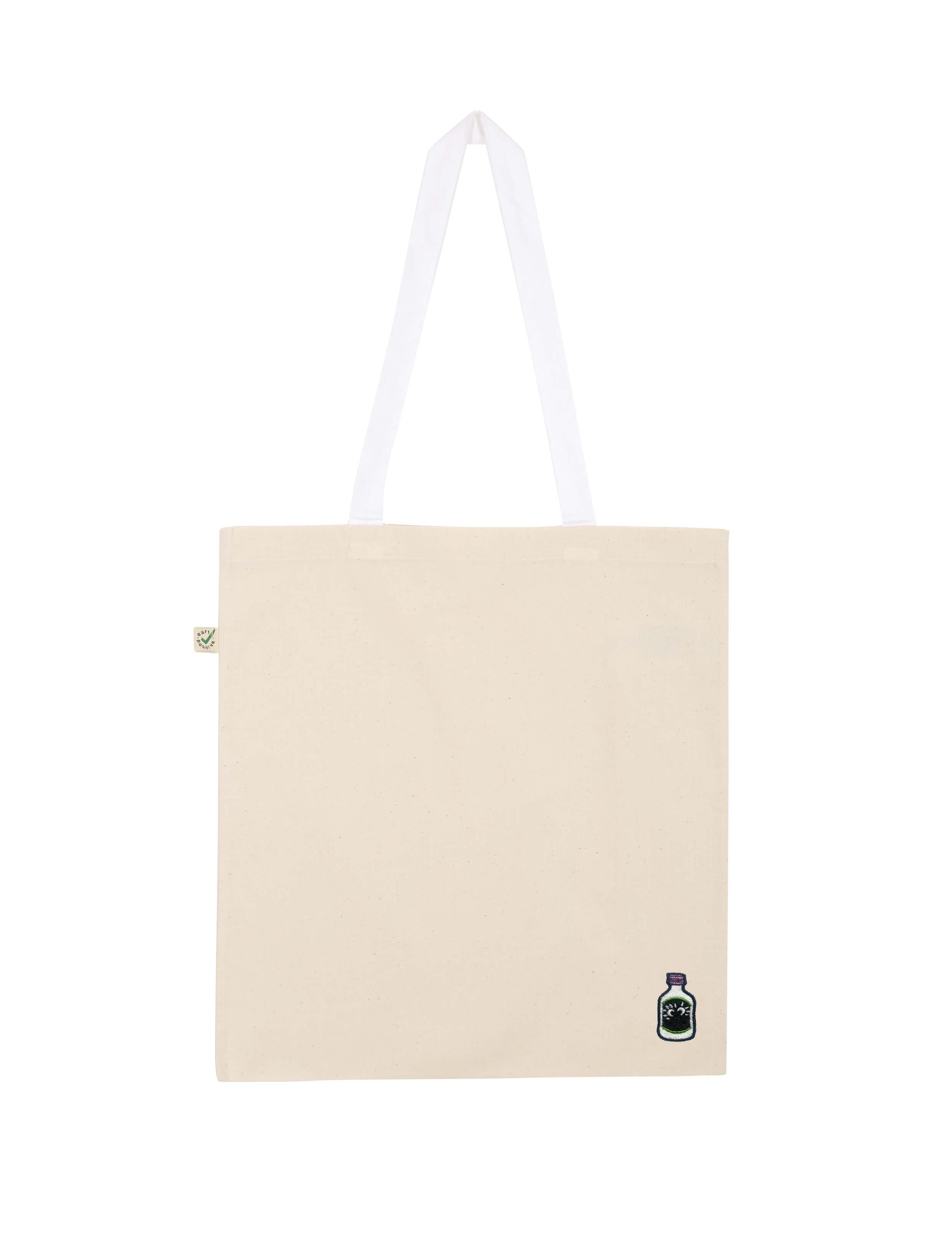 Borsa in cotone biologico ricamata e prodotta in modo equo con il design ufficiale di Little Coward.