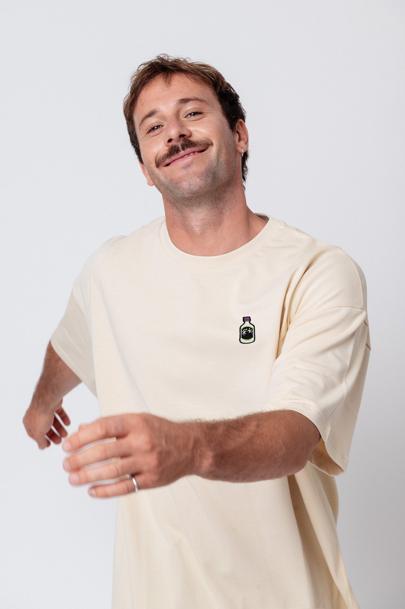 Heavy Oversized Bio Baumwoll T-Shirt mit extra schwerem Stoff (230gsm) und der offiziellen gestickten Kleiner Feigling Flasche