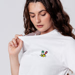 Besticktes Bio Baumwoll Unisex T-Shirt mit schwerem Stoff (190gsm) und dem offiziellen gestickten Kleiner Klopfer® Design