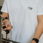Super hochwertiges Bio Baumwoll Unisex T-Shirt mit schwerem Stoff (190gsm) und gesticktem Latte Art Design