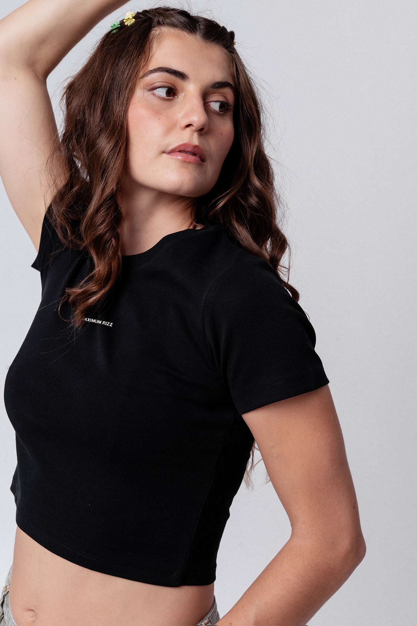 Maximum Rizz | Besticktes Bio Baumwoll Cropped T-Shirt