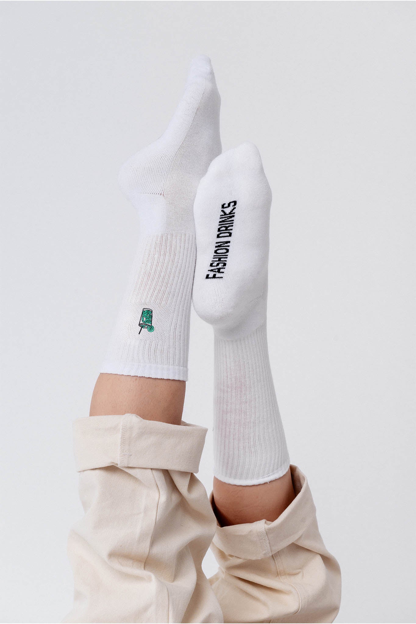 Calzini in cotone organico di altissima qualità con disegno di un mojito ricamato