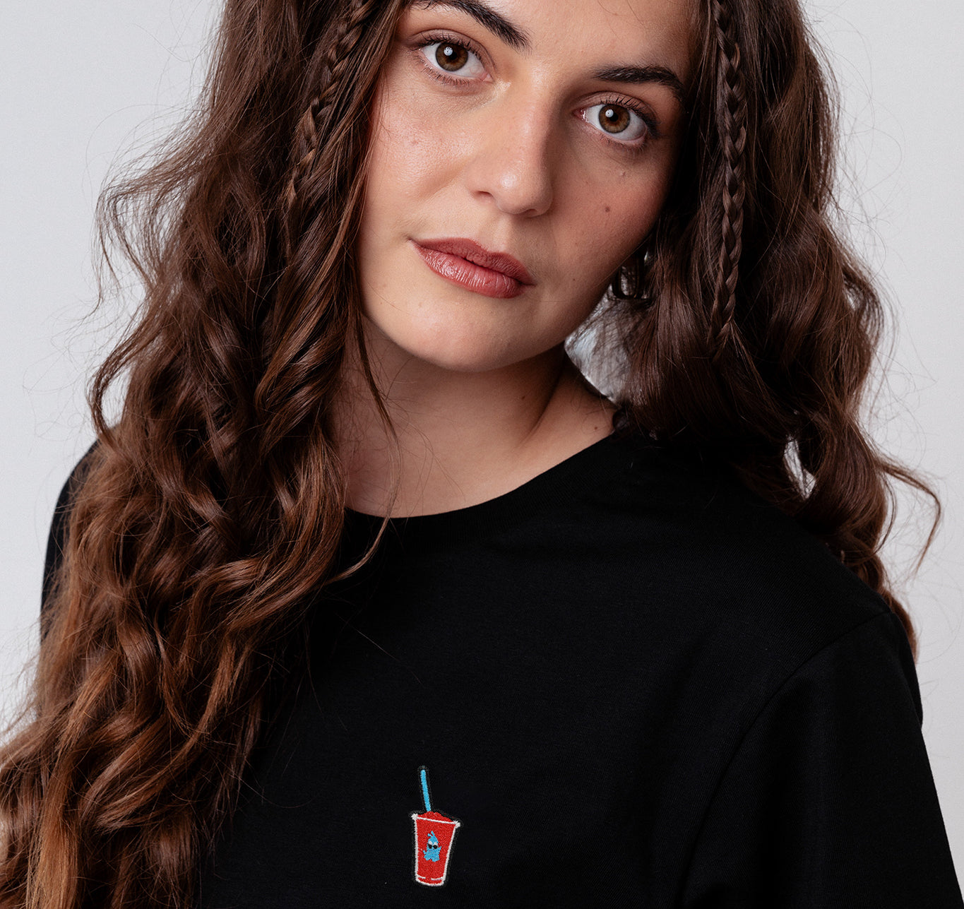Hochwertige Stickerei auf weicher, atmungsaktiver Bio-Baumwolle.