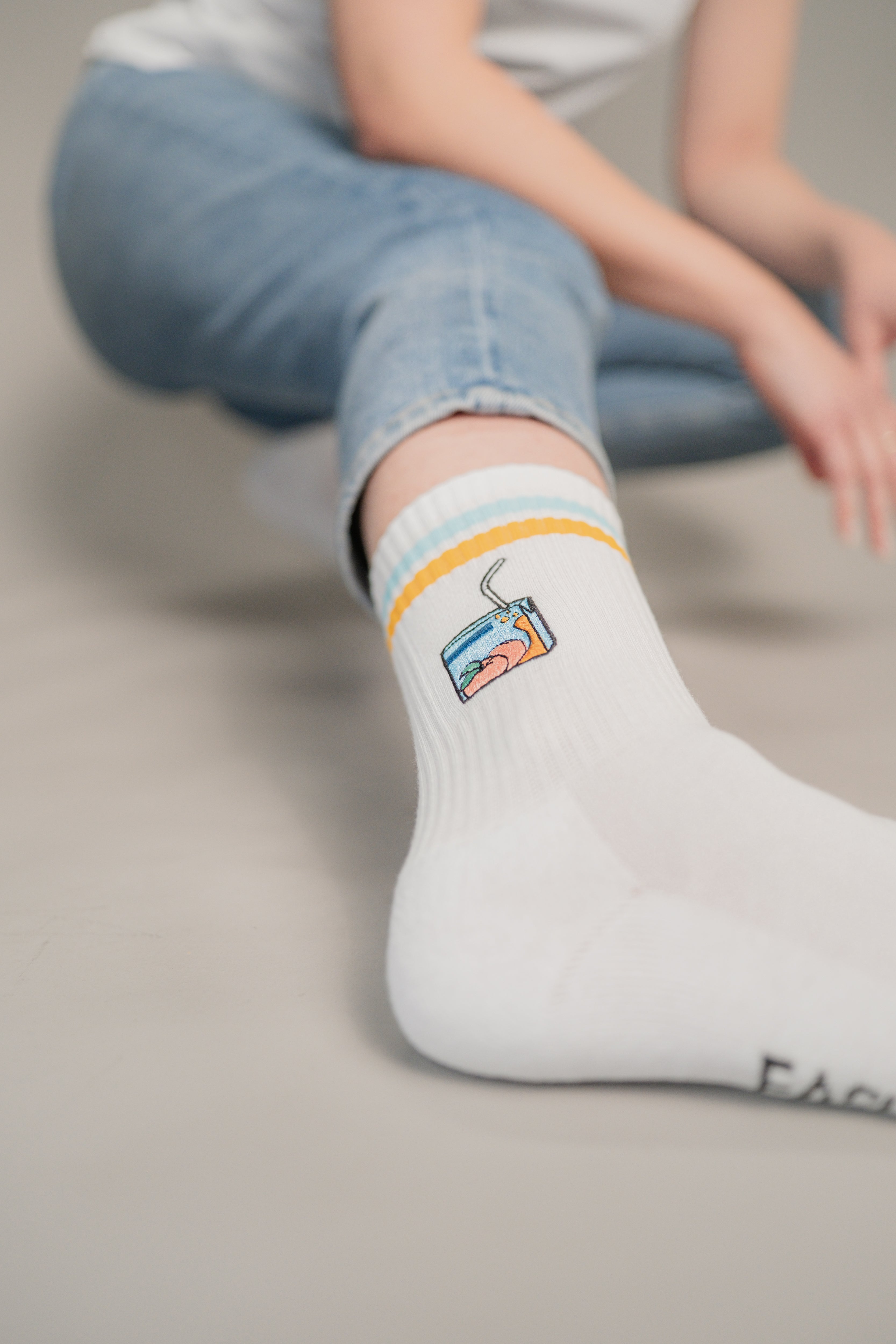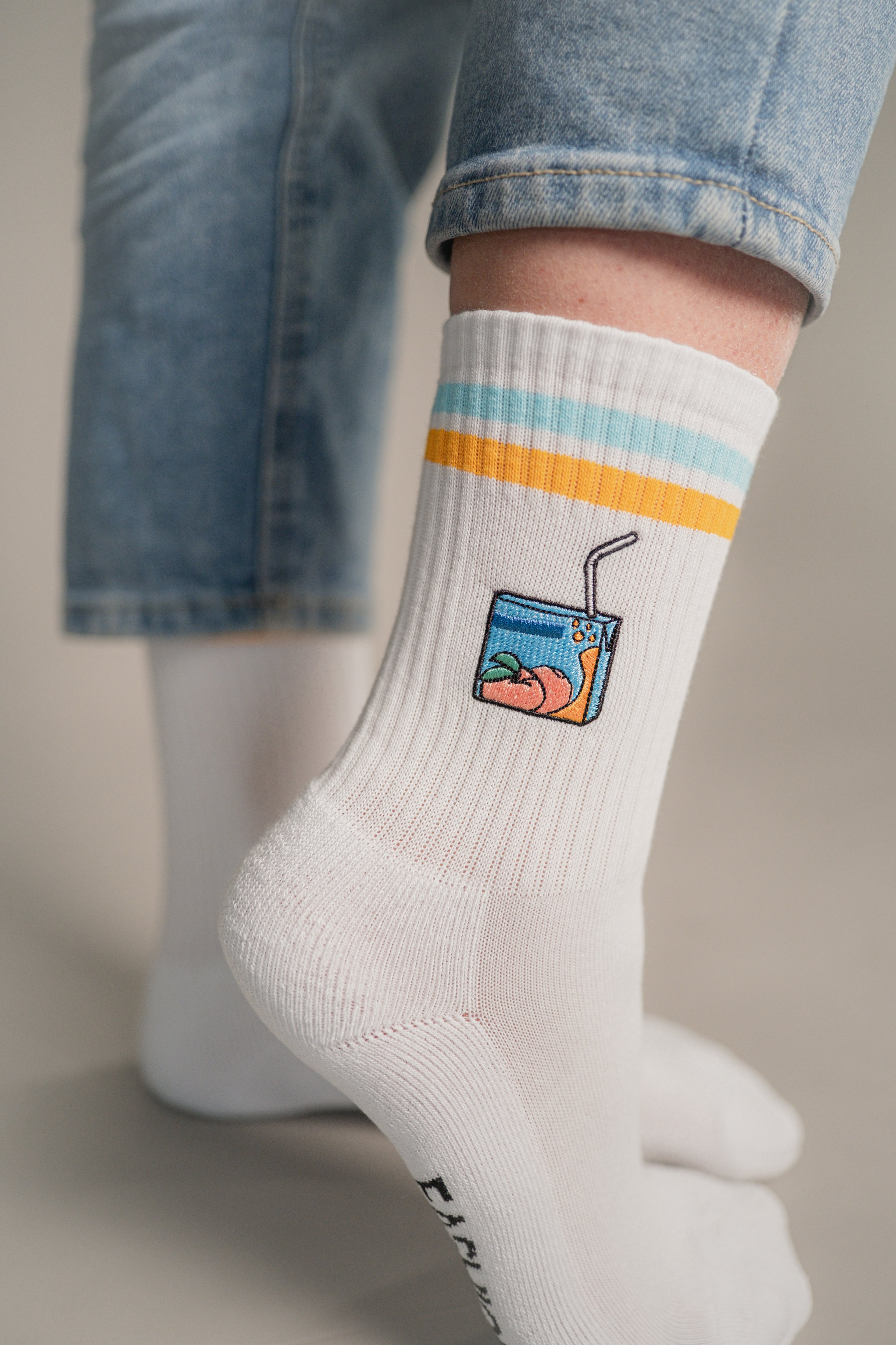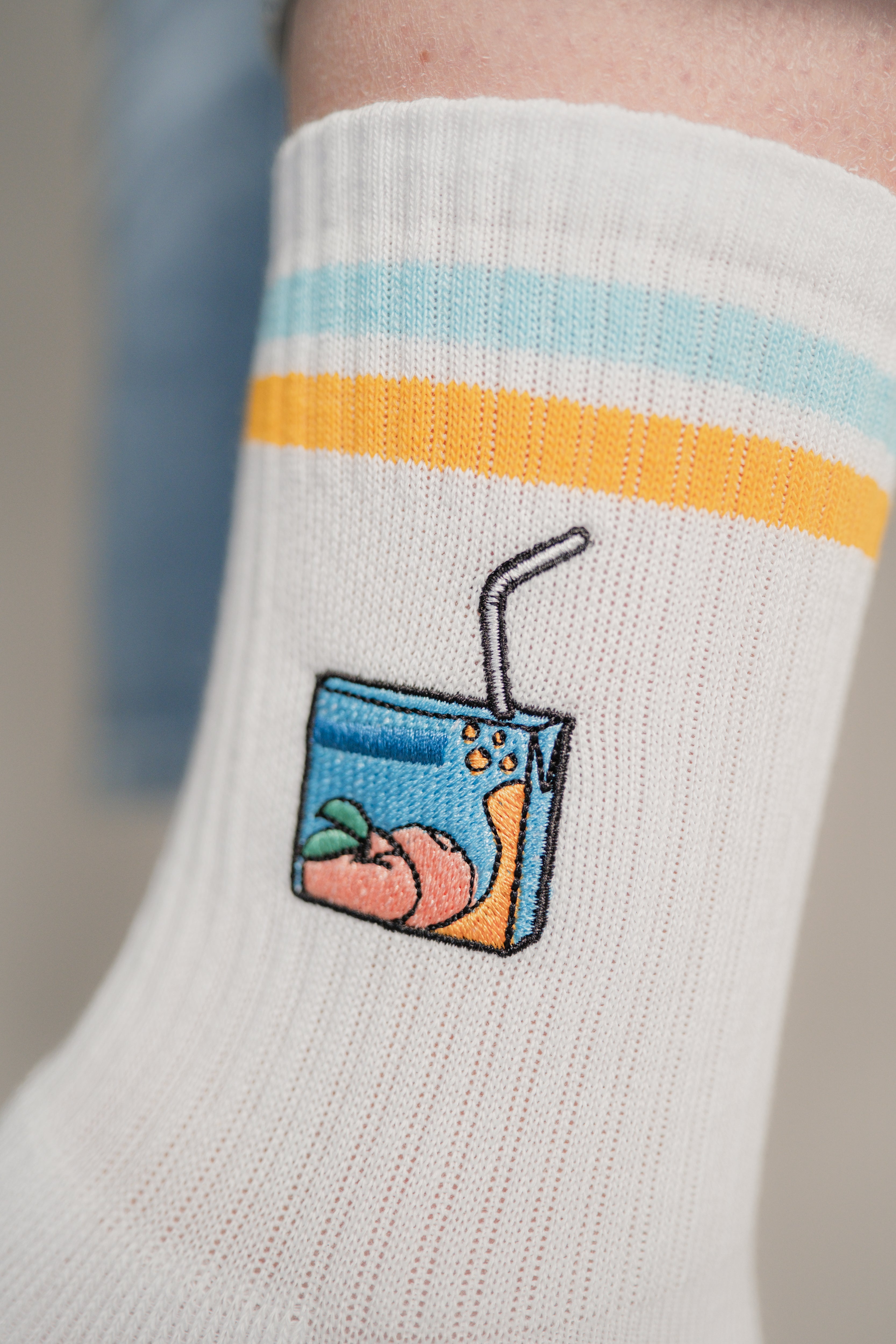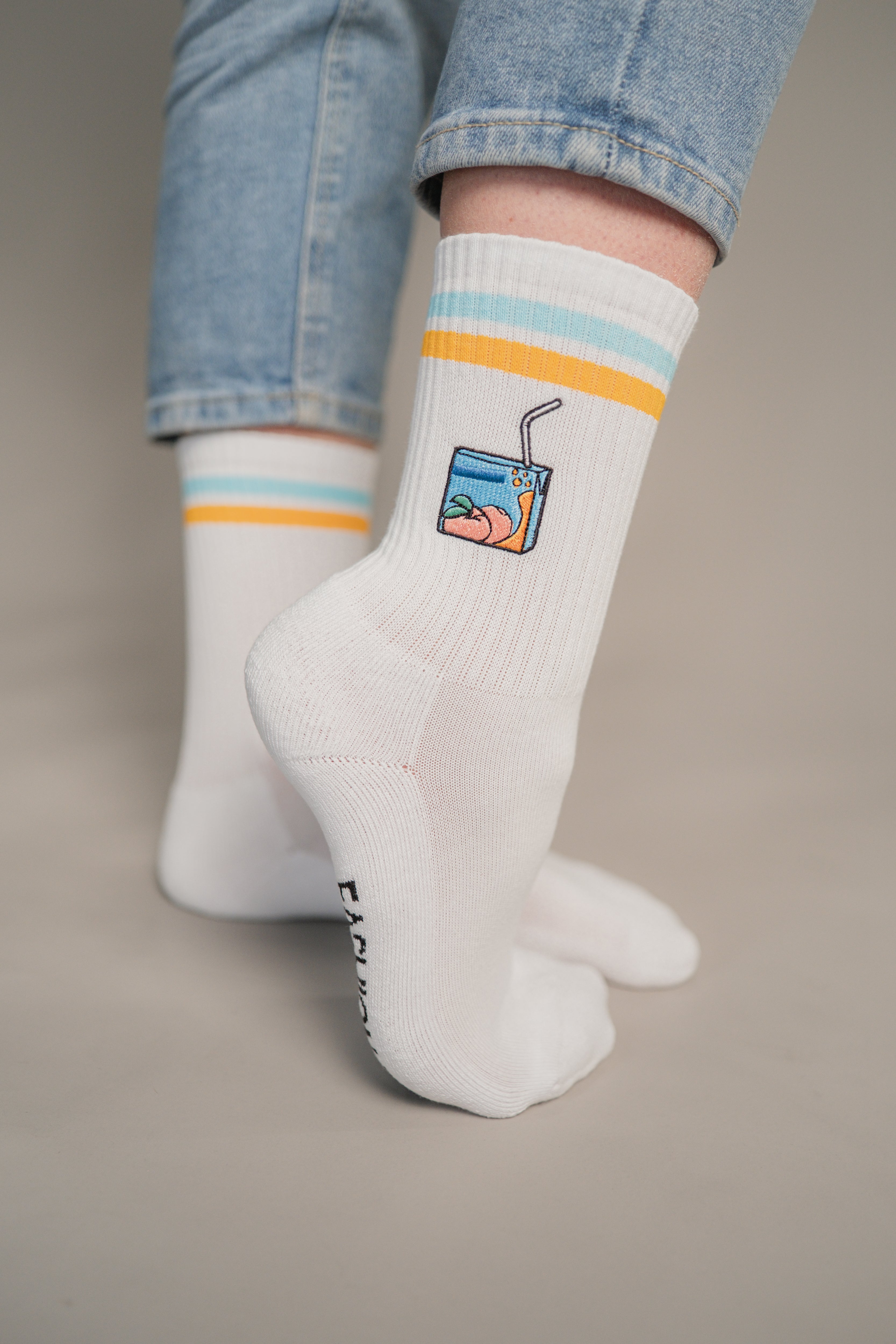 Pfirsich Eistee | Bestickte Bio Baumwoll Socken