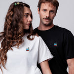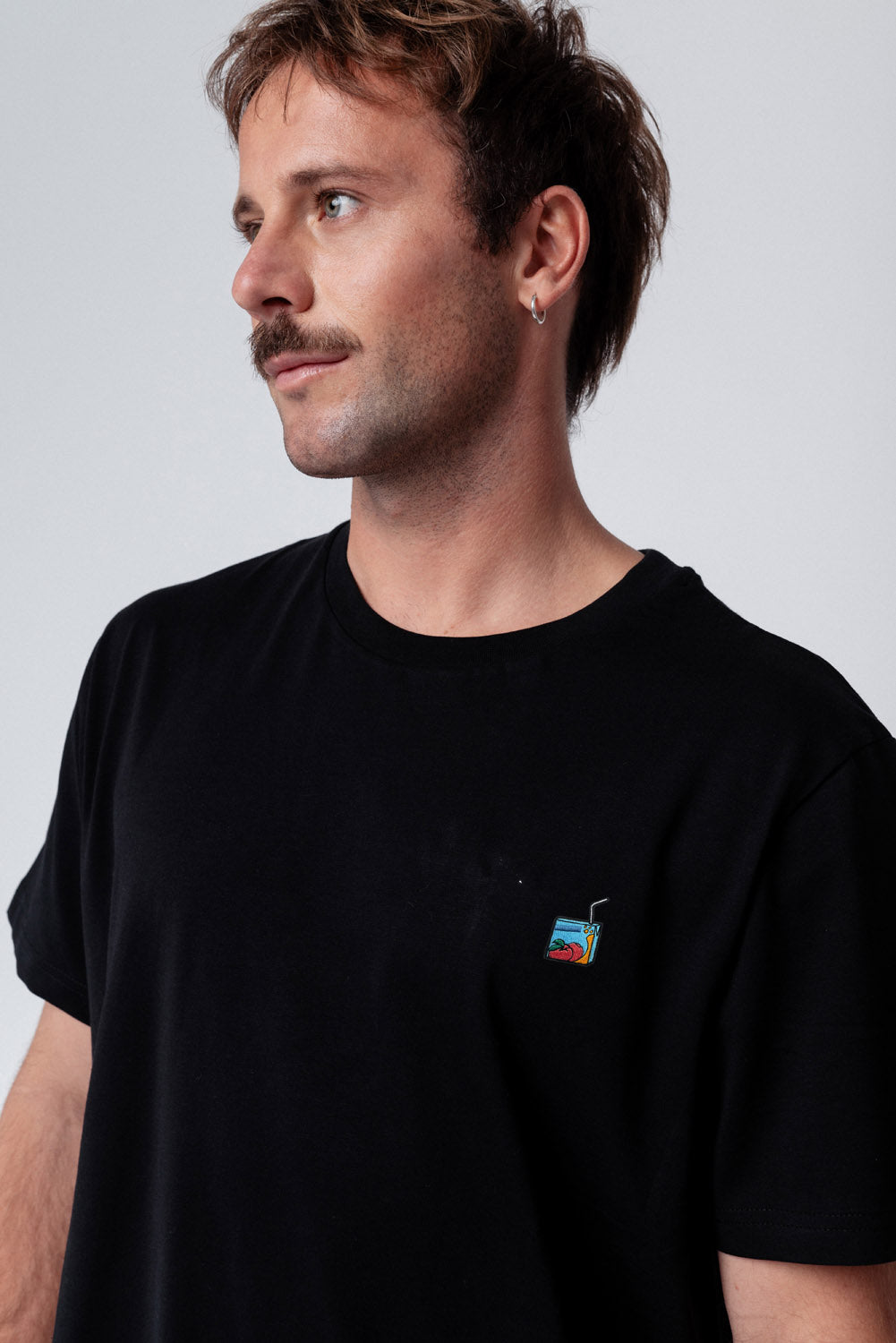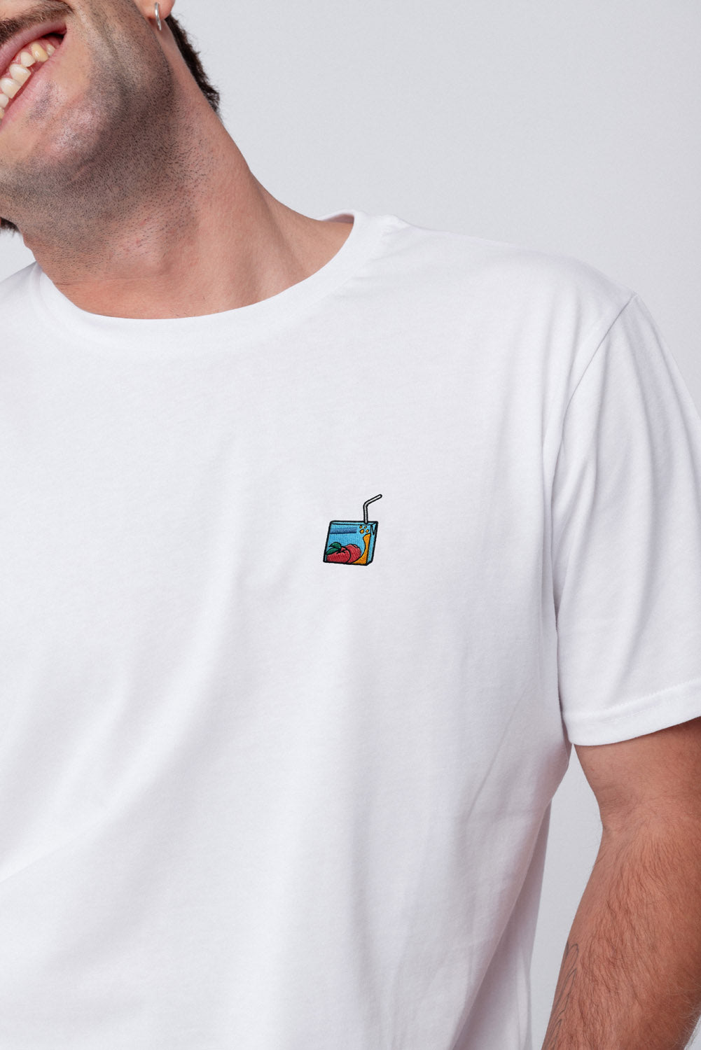 Super hochwertiges Bio Baumwoll Unisex T-Shirt mit schwerem Stoff (190gsm) und dem gestickten Pfirsich Eistee Design