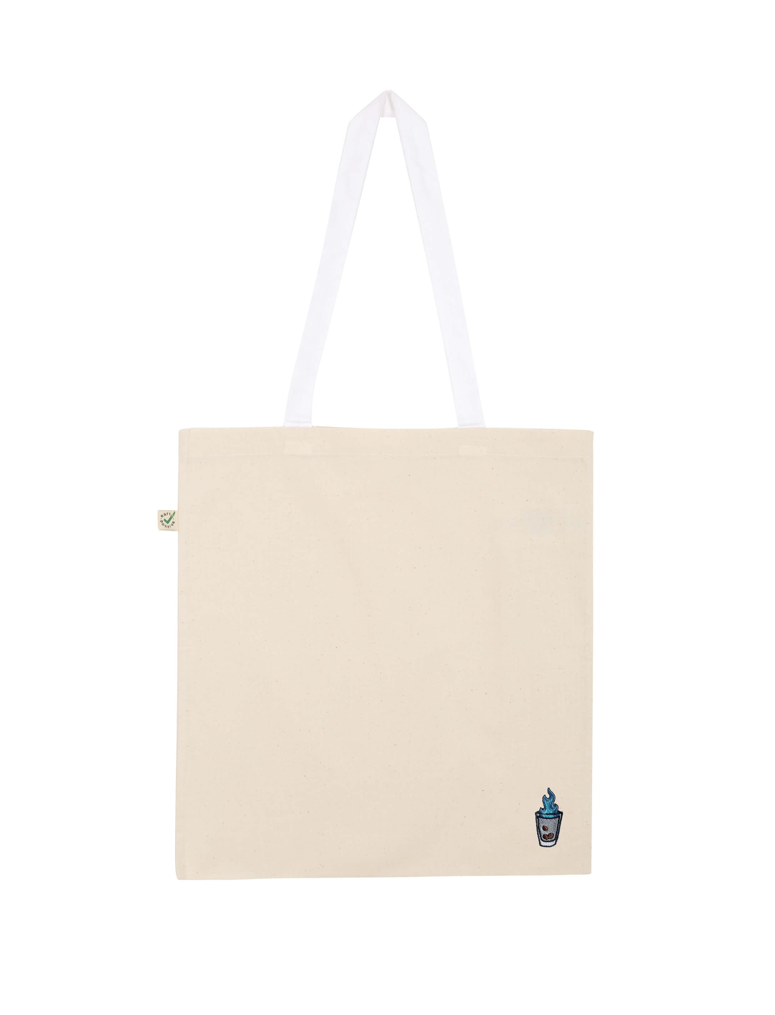 Bestickte, fair produzierte Bio-Baumwoll-Tragetasche im Sambuca  Design.