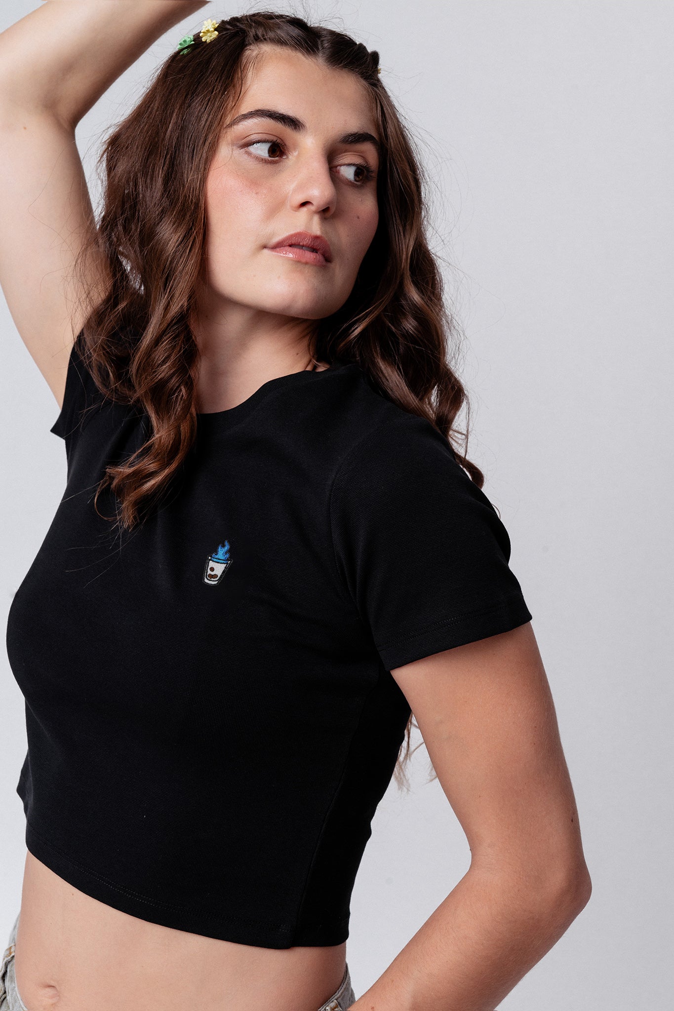 Sambuca | Besticktes Bio Baumwoll Cropped T-Shirt