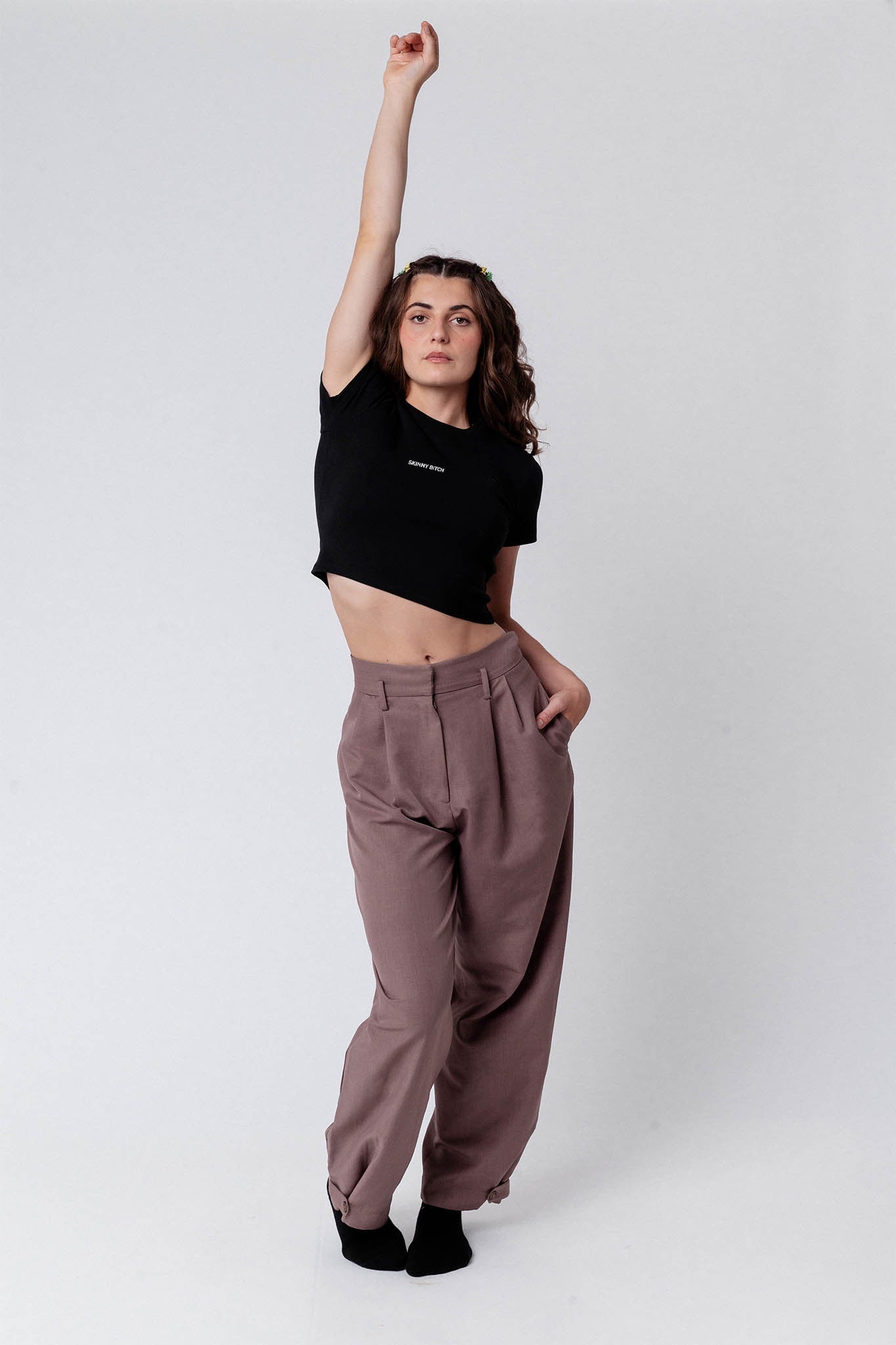 Skinny Bitch | Besticktes Bio Baumwoll Cropped T-Shirt