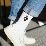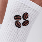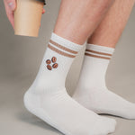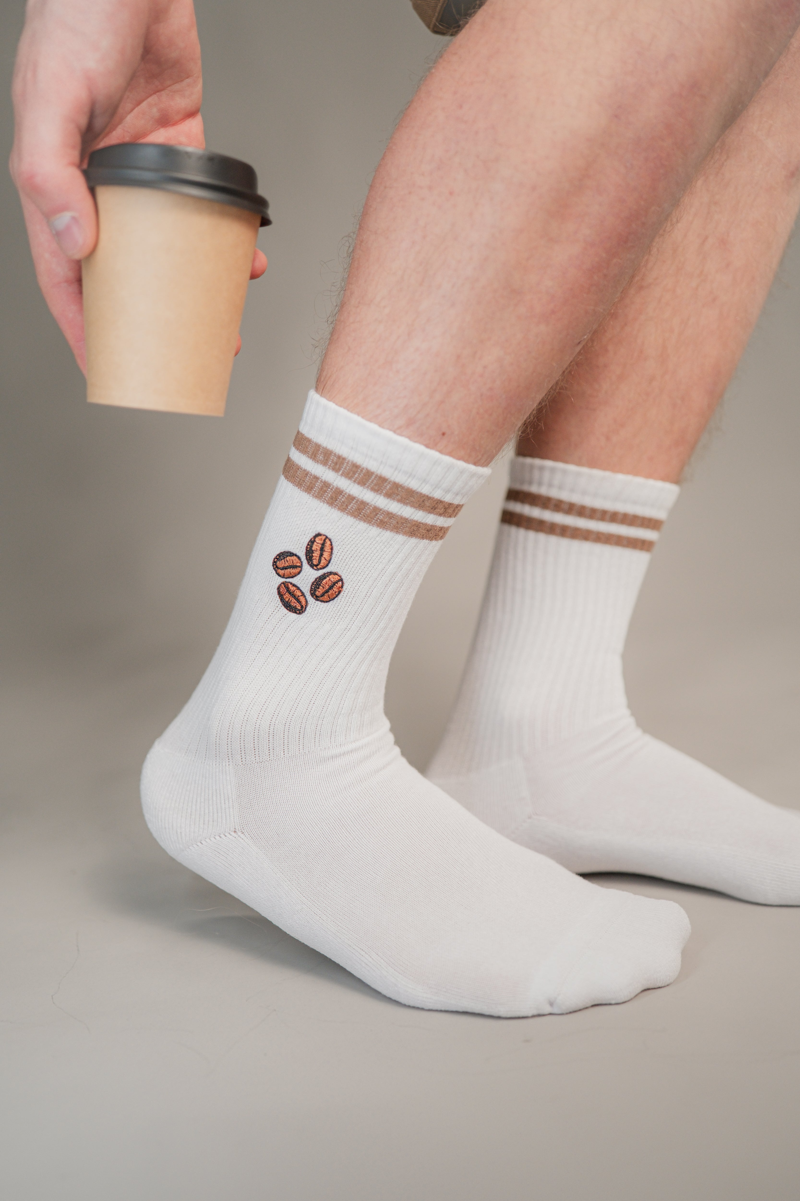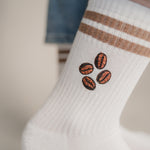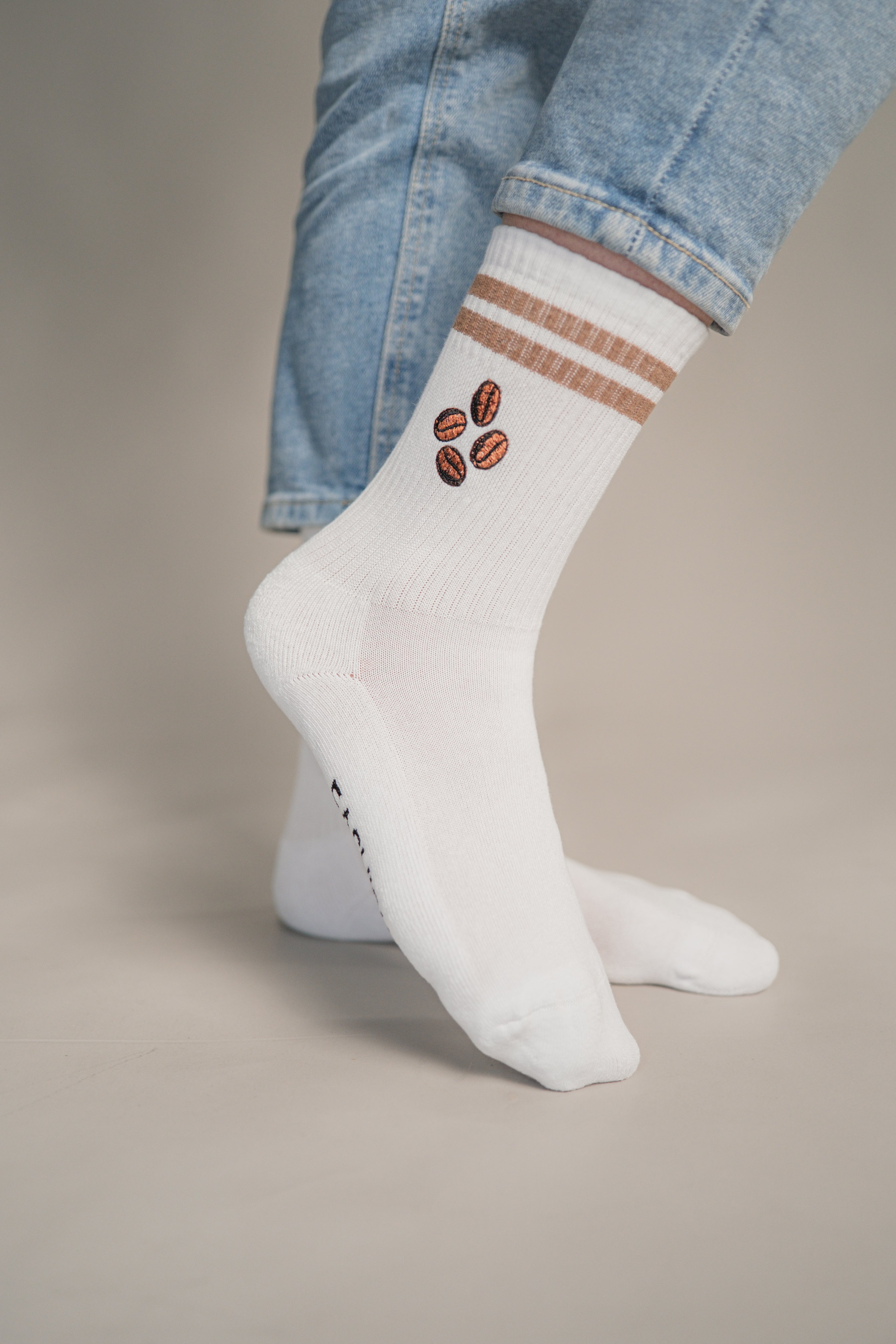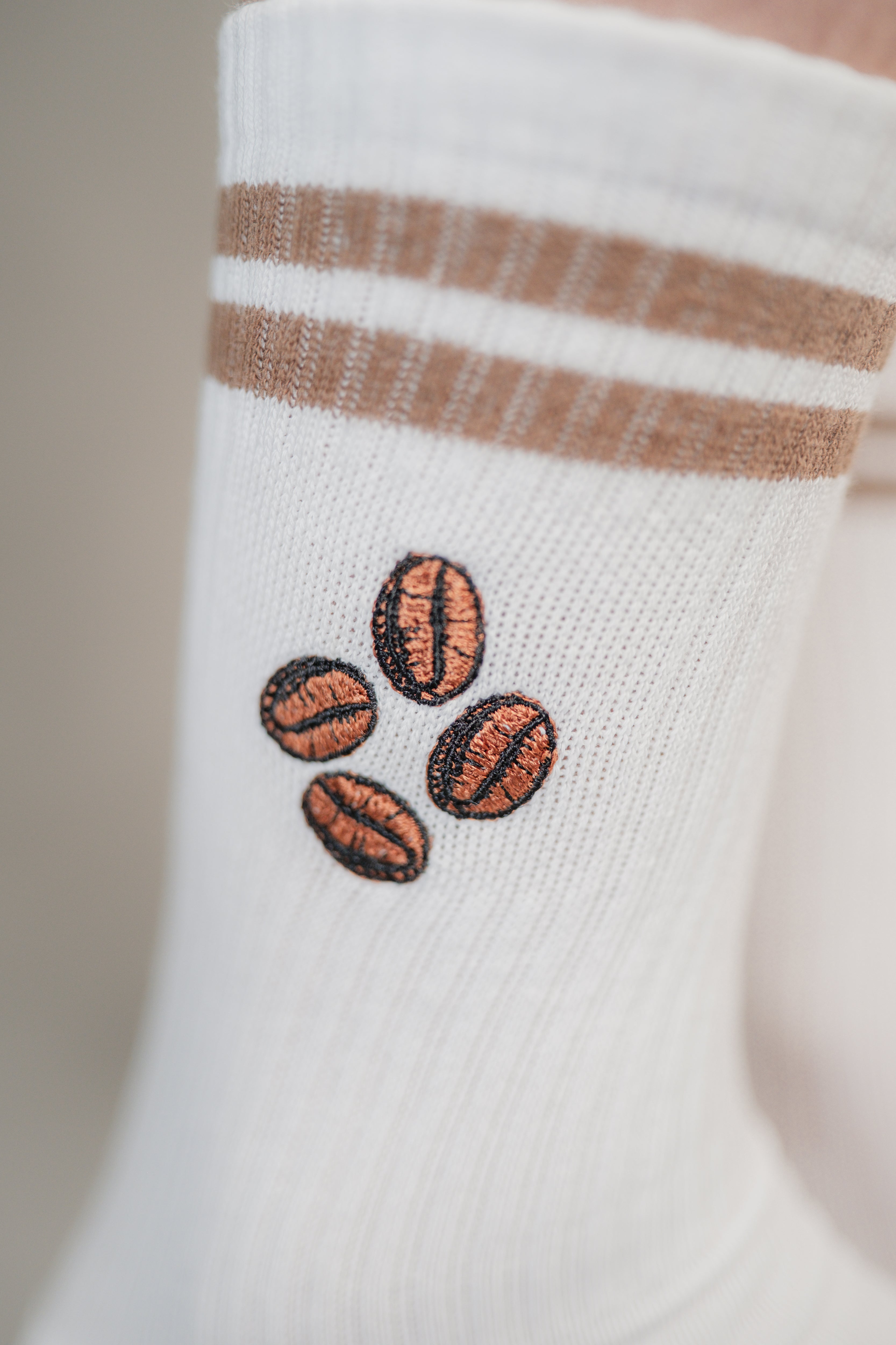 Calzini in cotone organico di altissima qualità con disegno di chicchi di caffè ricamati