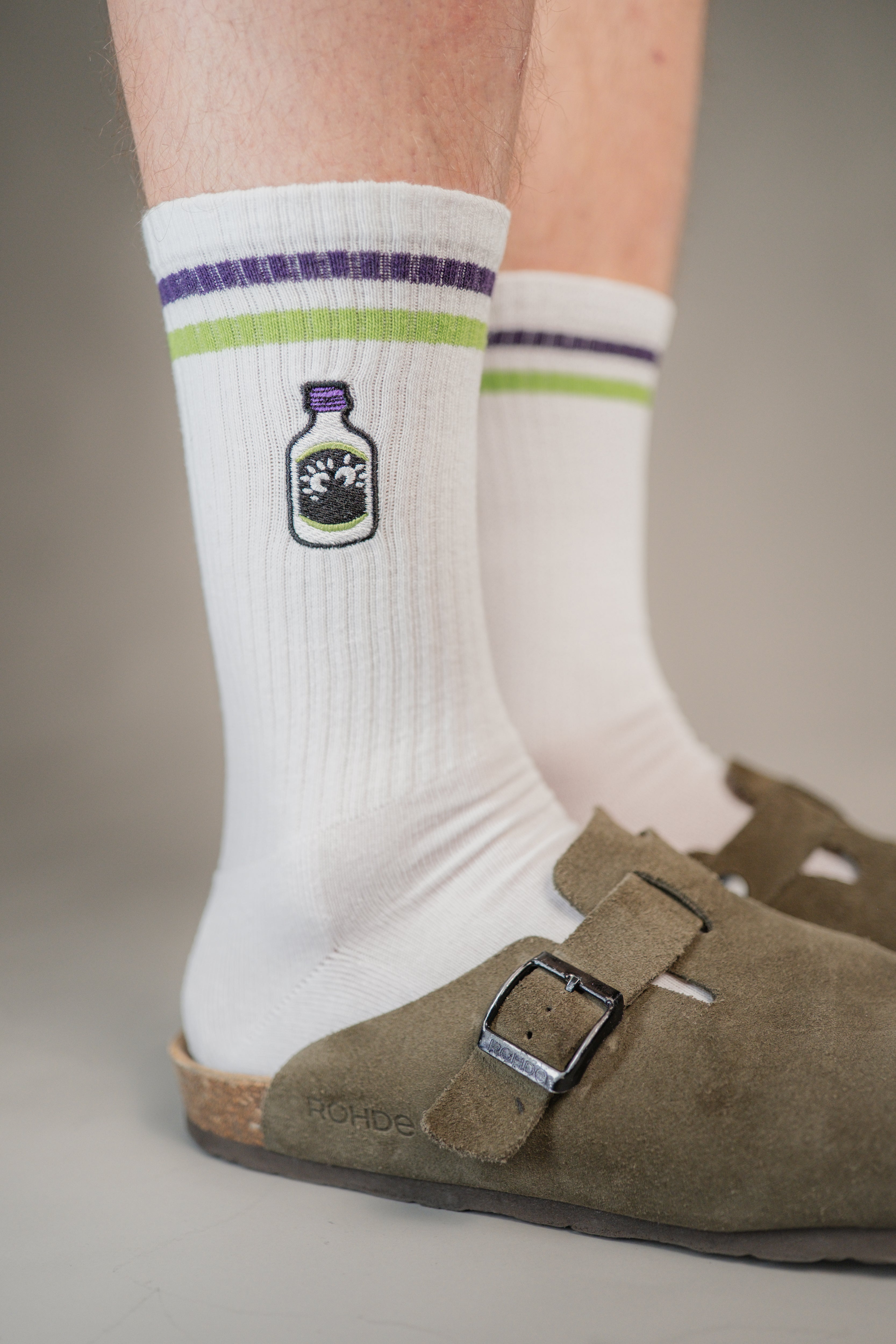 Fashion Drinks bietet eine einzigartige Kombination aus exklusiven, handgezeichneten Designs, hoher Qualität und Nachhaltigkeit. Nur bei uns findest du Socken mit extrem detaillierter Stickerei. Unsere Socken, darunter beliebte Marken wie Underberg, Bionade und Früh Kölsch, sind aus 80 % zertifizierter Bio-Baumwolle gefertigt. Sie bieten nicht nur ein tolles Tragegefühl, sondern auch schnellen Versand – ideal für jede Gelegenheit! Wir arbeiten mit über 30 Partnern aus der Getränkeindustrie zusammen und bieten exklusive, offizielle Designs, die du nur bei uns findest.