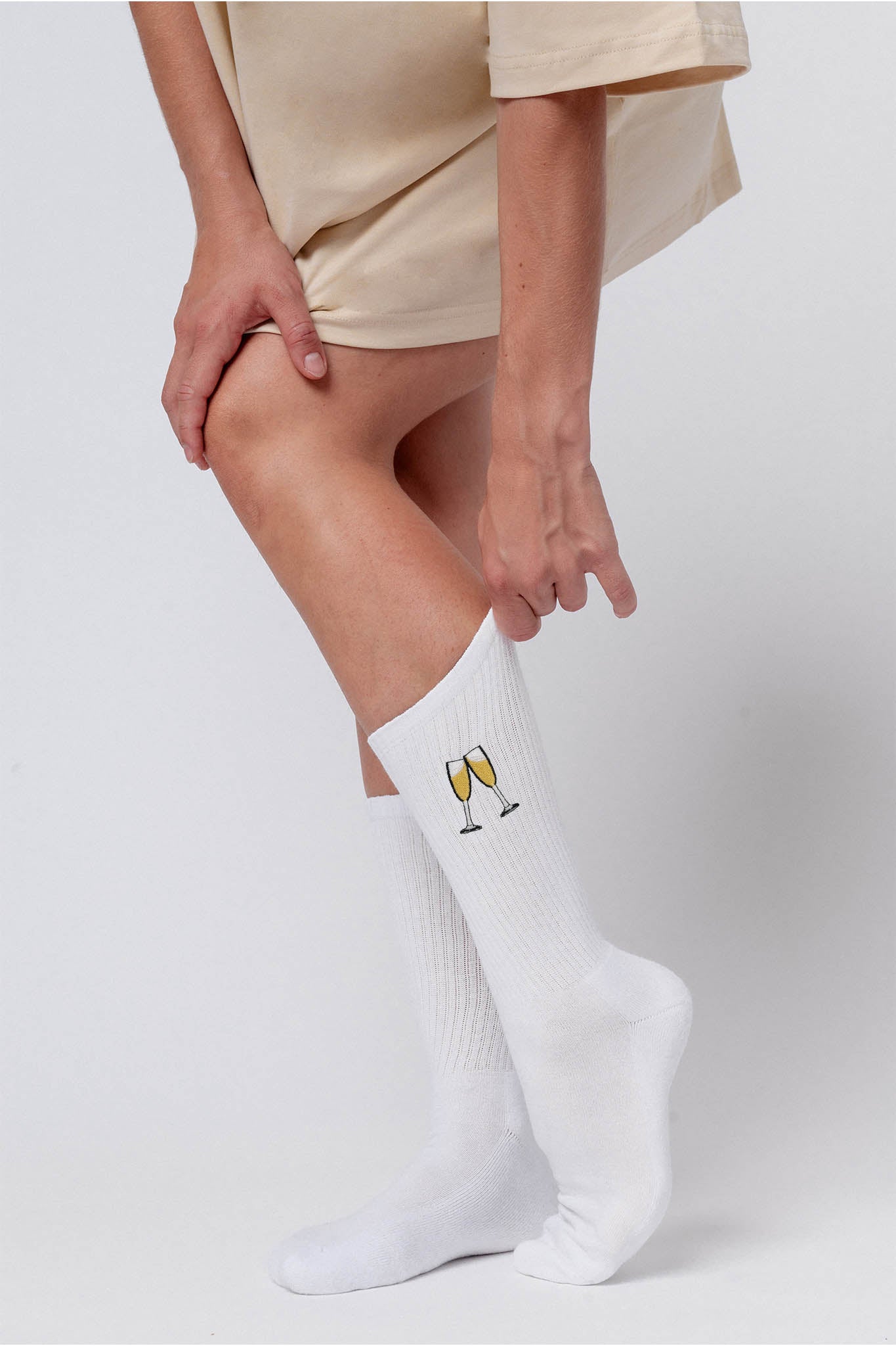 Calzini in cotone organico di altissima qualità con design ricamato a forma di champagne